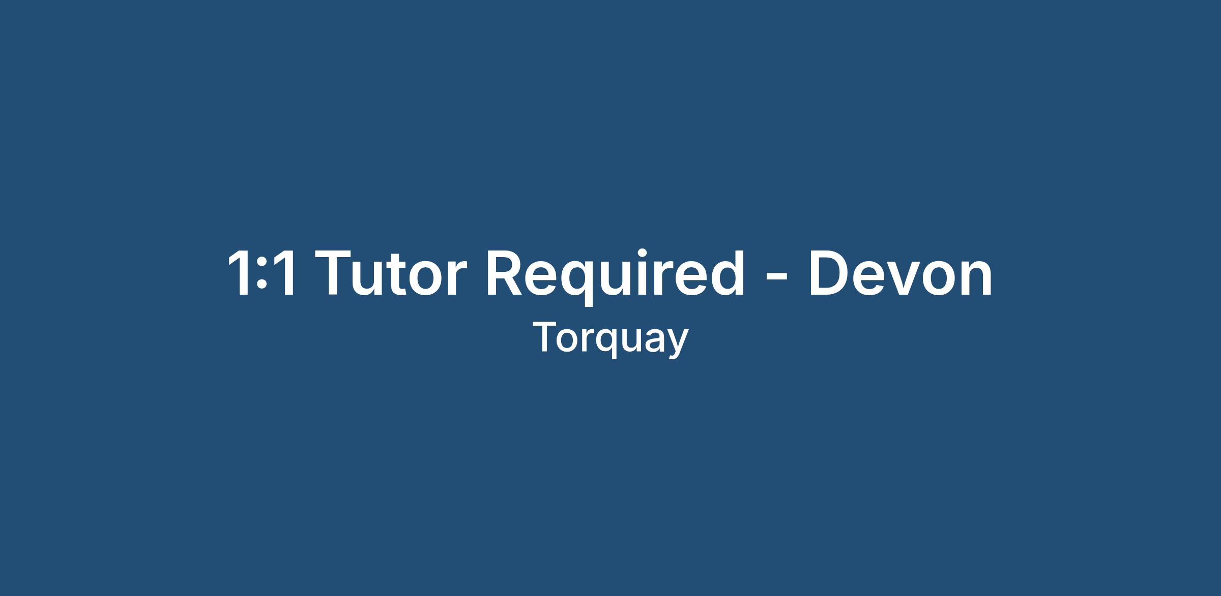 1:1 Tutor Required - General Tuition - Torquay and Nearby Areas of Devon