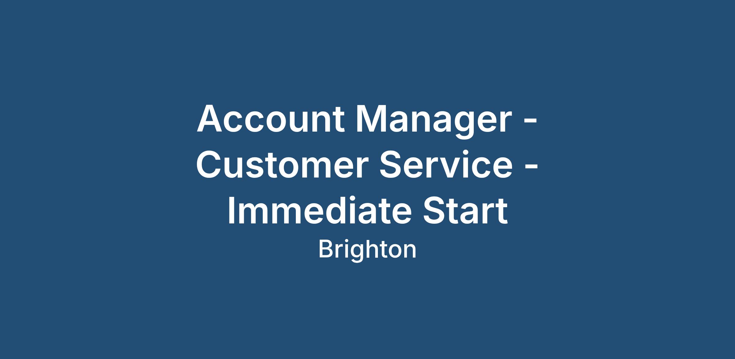 Account Manager - Customer Service - Immediate Start