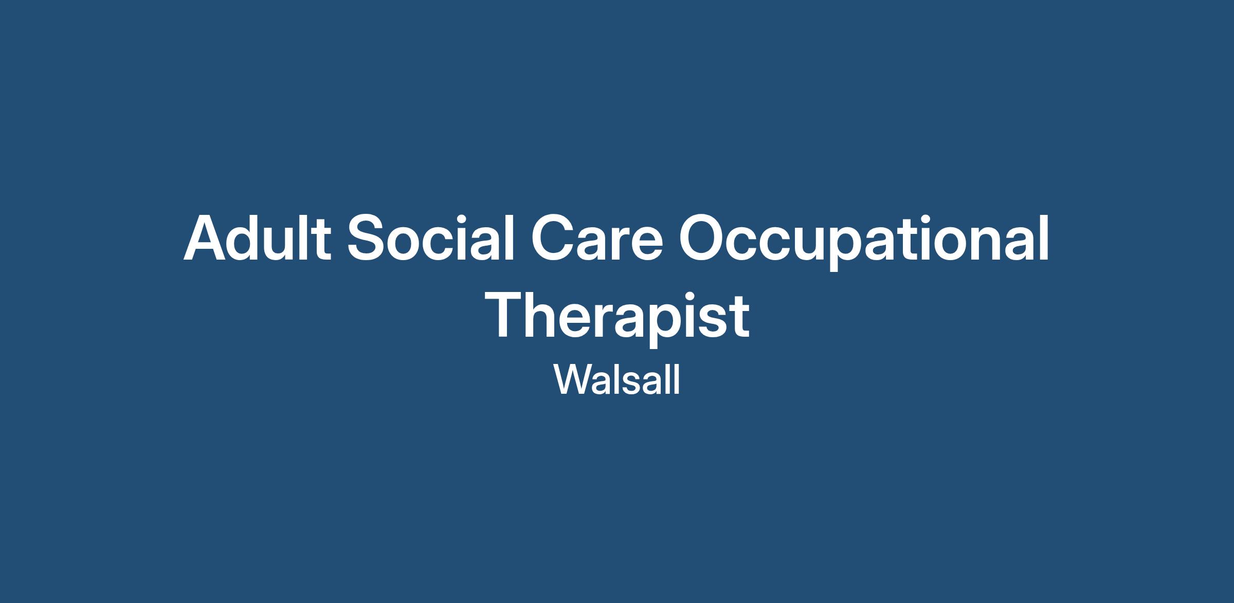 Occupational Therapist Adult Social Care local authority located in Walsall