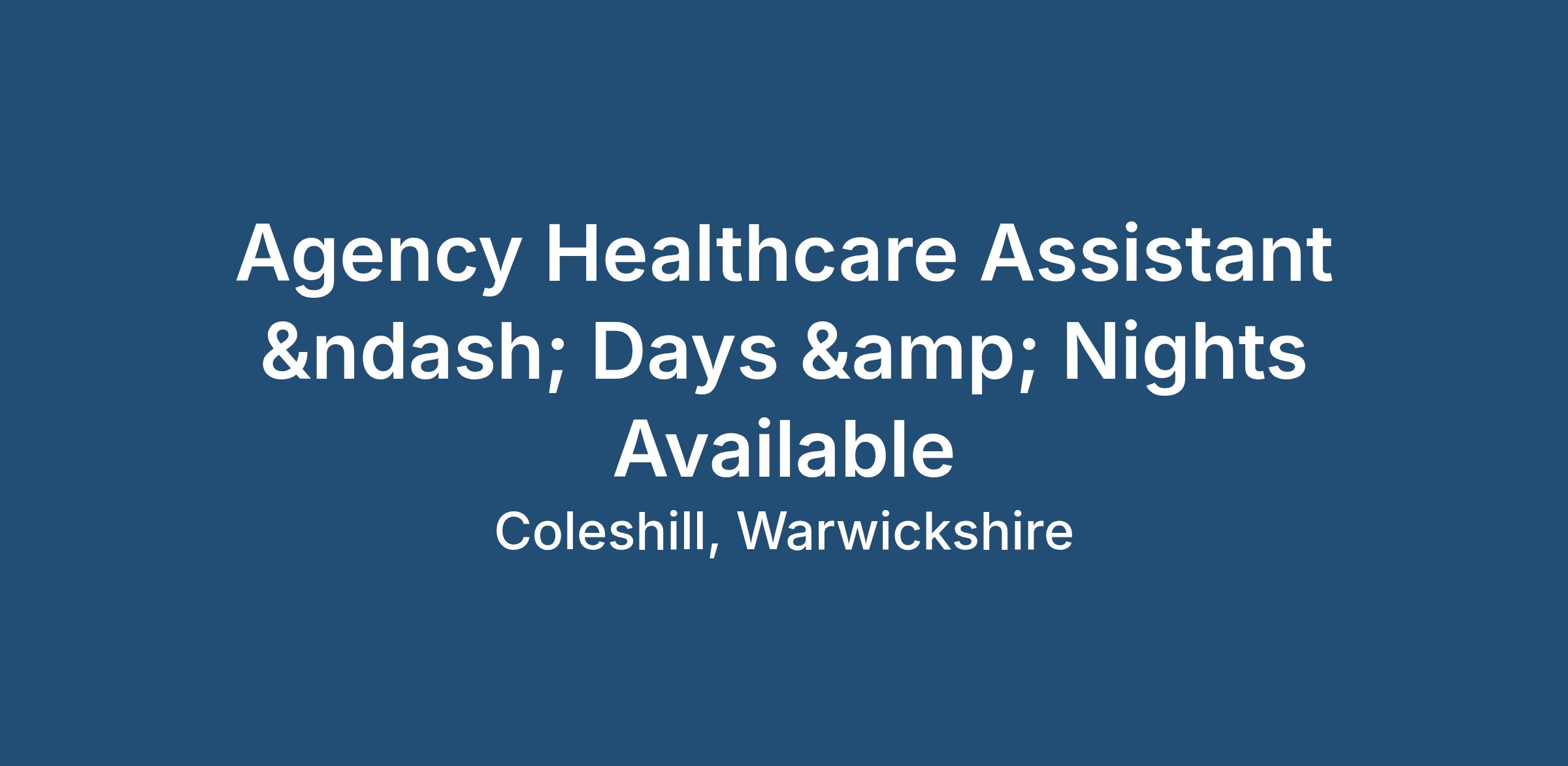 Agency Healthcare Assistant – Days & Nights Available