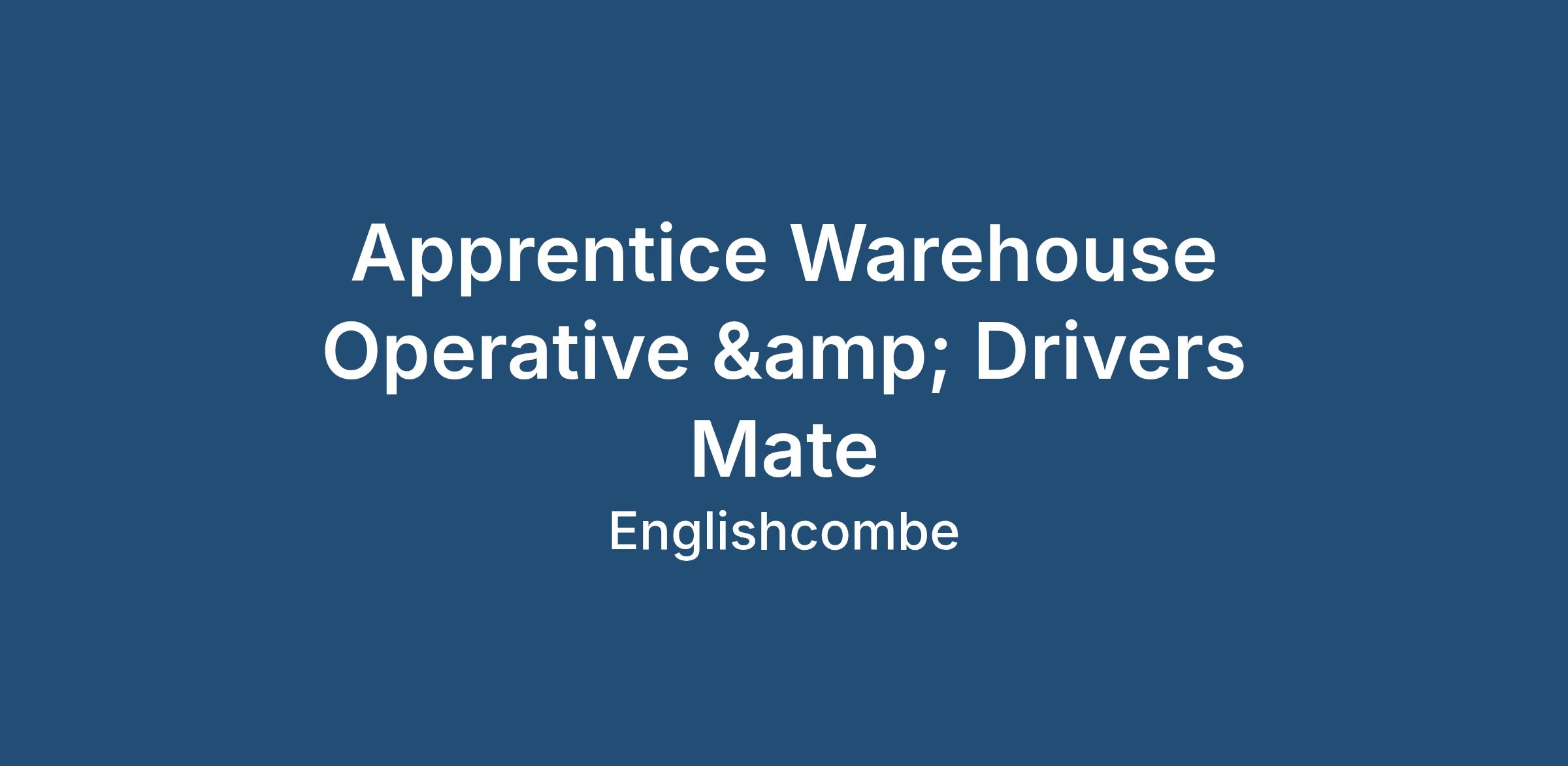 * Driving the forklift truck and loading and unloading vehicles. Forklift training will be provided towards the end of the apprenticeship, but only after the successful applicant is fully settled into the team and fully committed to completing their apprenticeship and staying on for a period