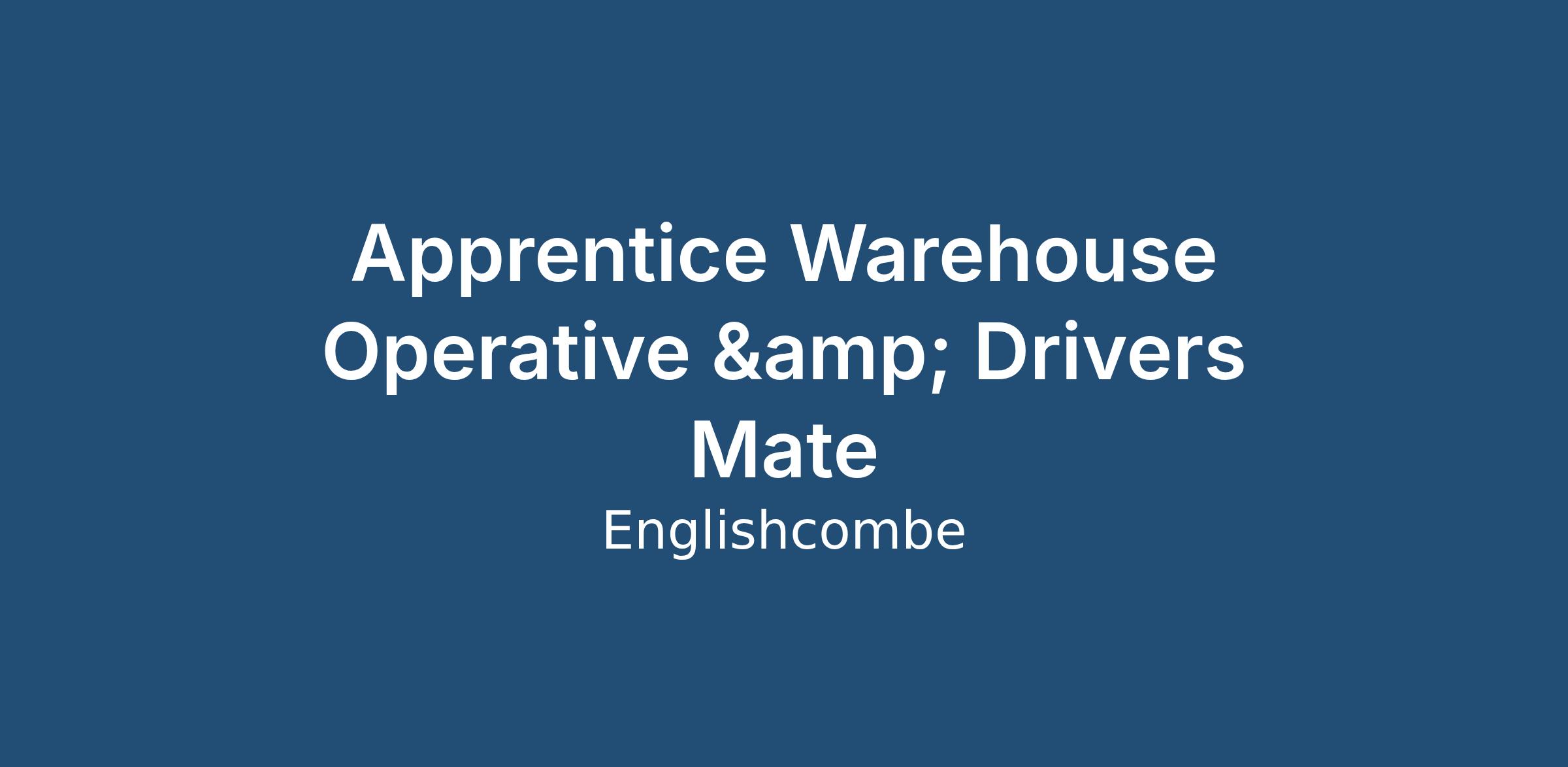 * Driving the forklift truck and loading and unloading vehicles. Forklift training will be provided towards the end of the apprenticeship, but only after the successful applicant is fully settled into the team and fully committed to completing their apprenticeship and staying on for a period