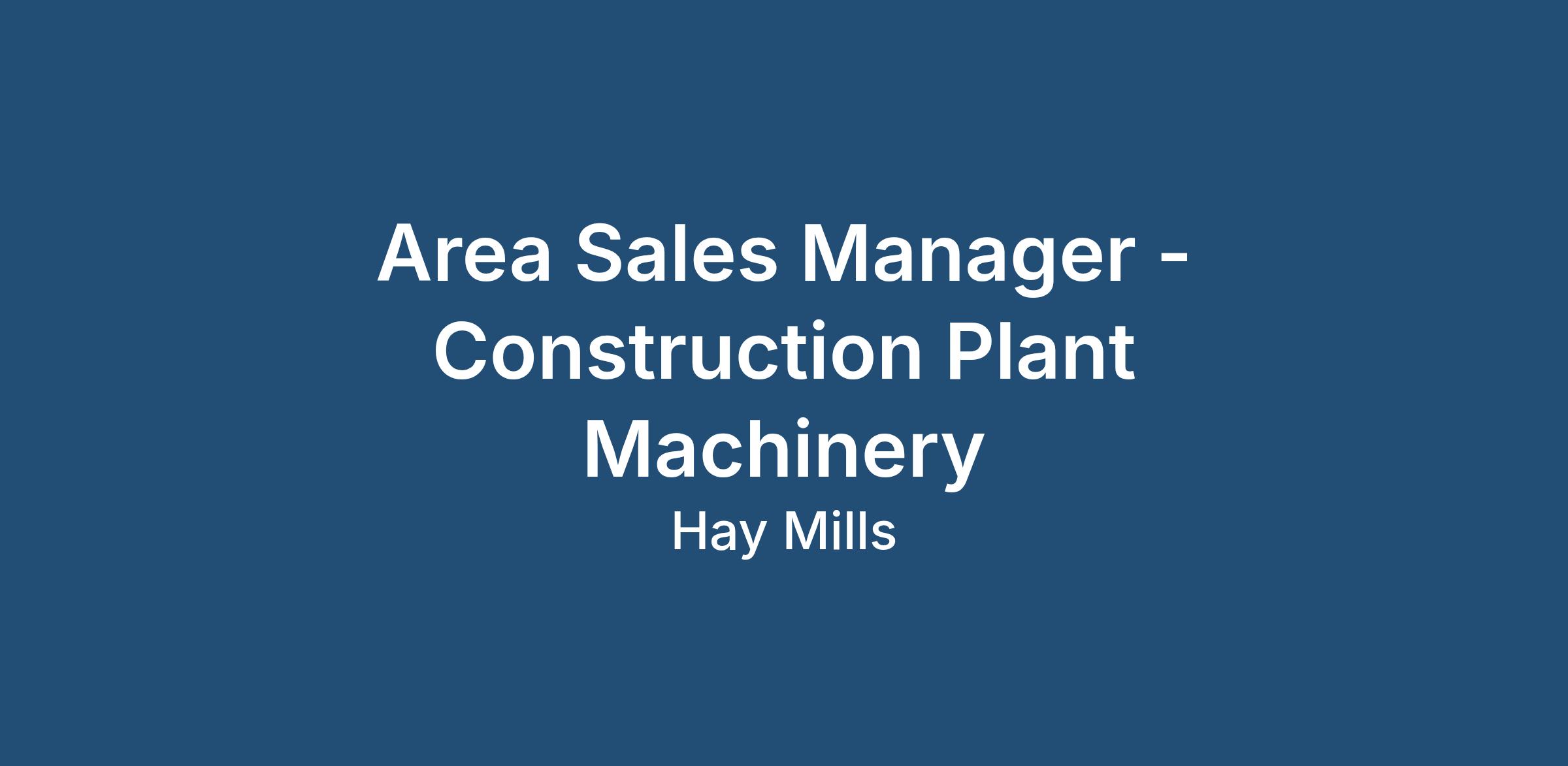 As an Area Sales Manager, you will promote and sell Heavy Plant & Construction machinery from a leading manufacturer within the dealership territory to new and existing customers. This customer-facing role involves building strong relationships in the construction sales industry while ensuring first-class customer service.