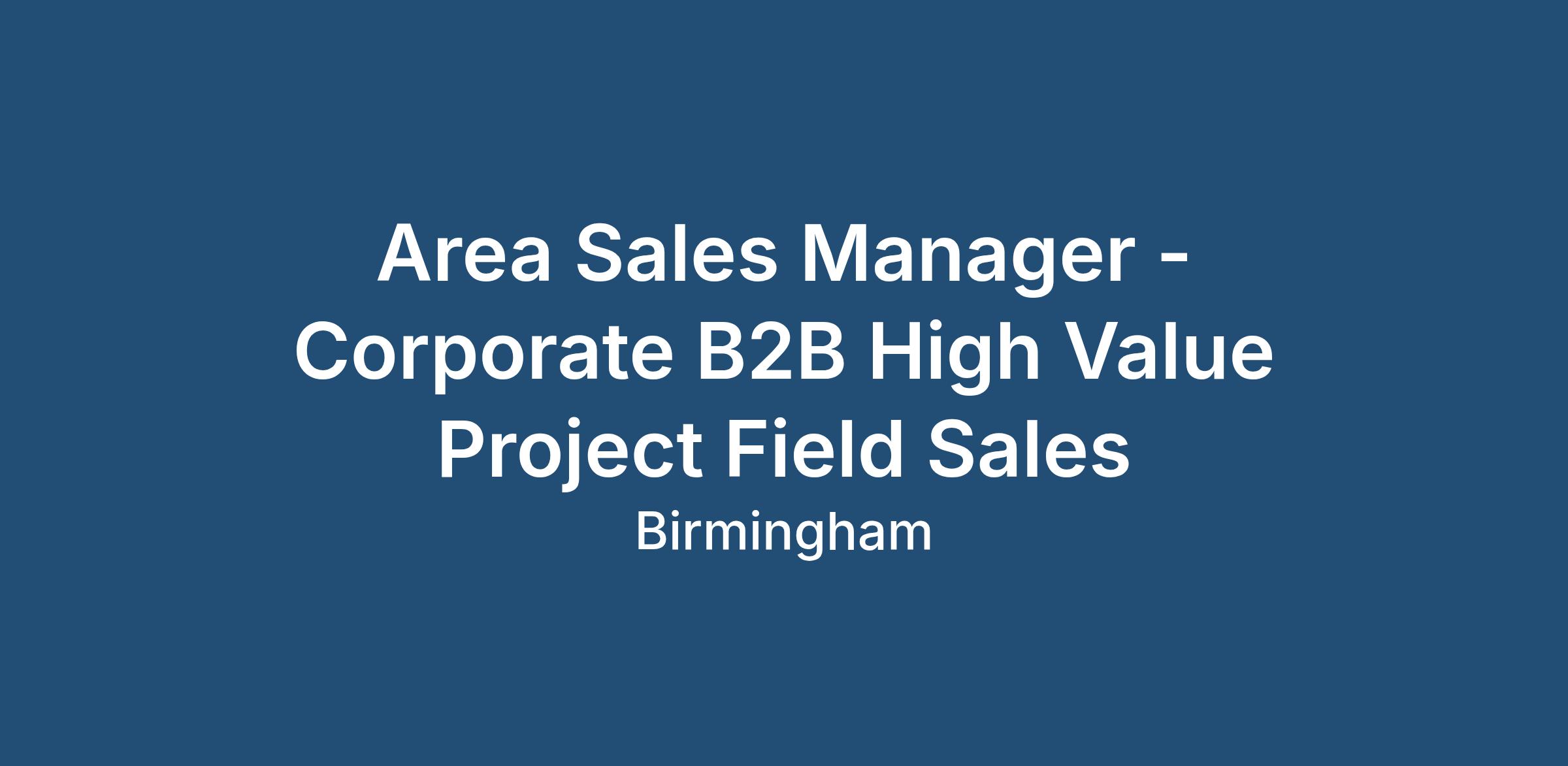 Company - +£100M Global Multinational Corporate with a high performing national field sales team of Area Sales Managers.