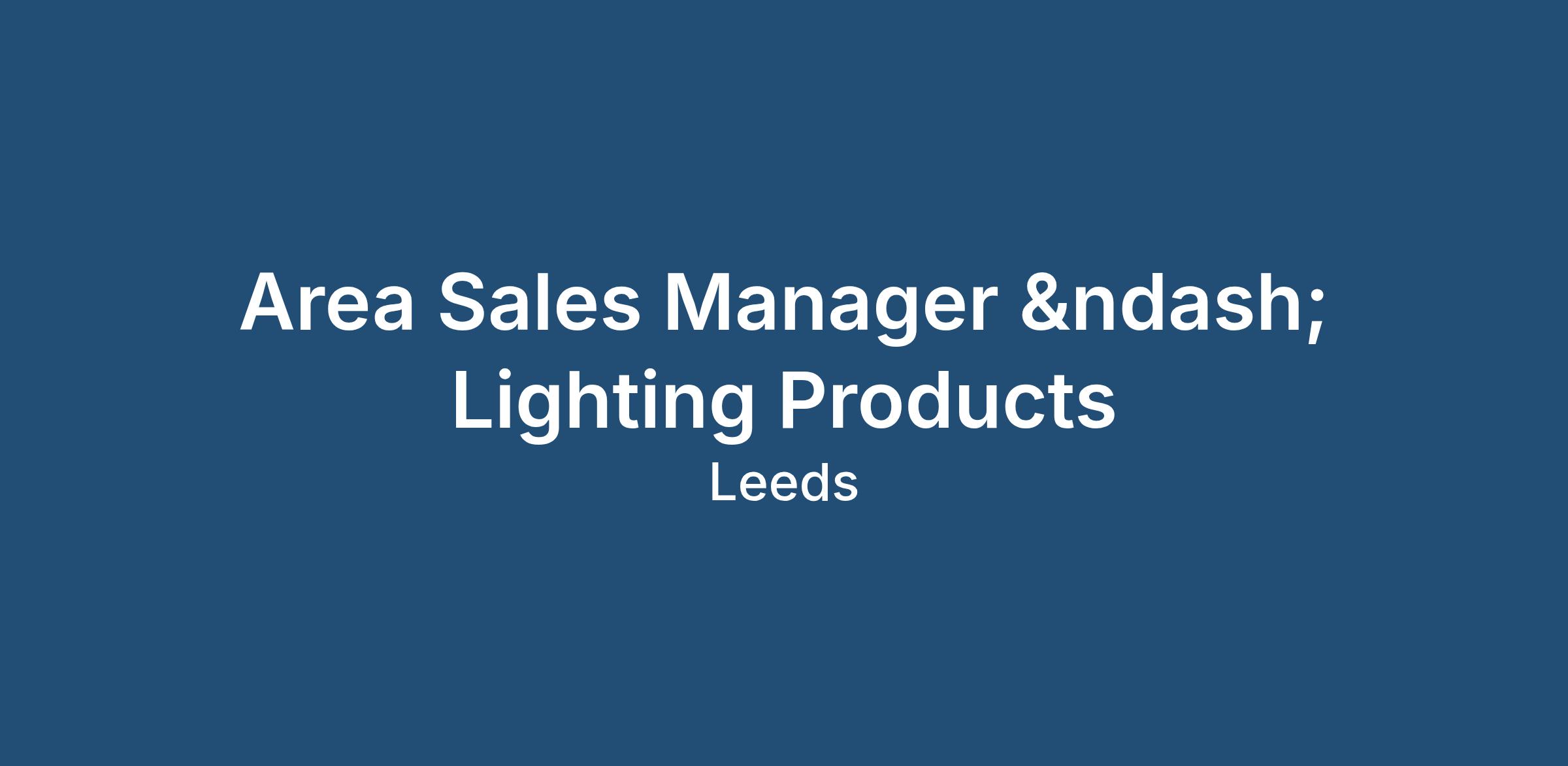 The ideal applicant will be Area Sales Manager – Lighting Products with: