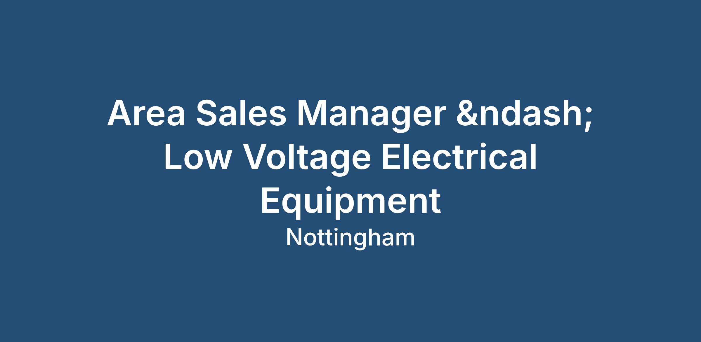 The ideal applicant will be an Area Sales Manager – Low Voltage Electrical Equipment with: