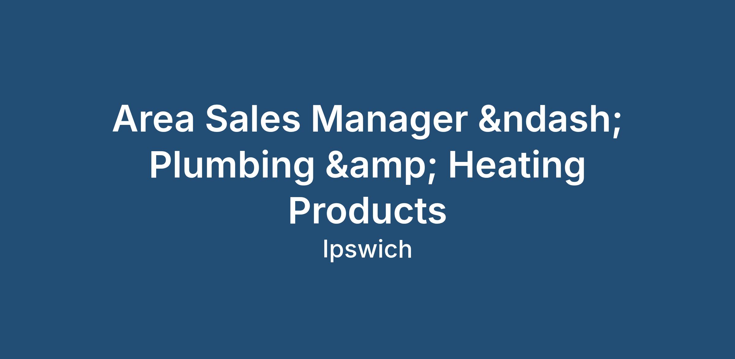 Area Sales Manager – Plumbing & Heating Products