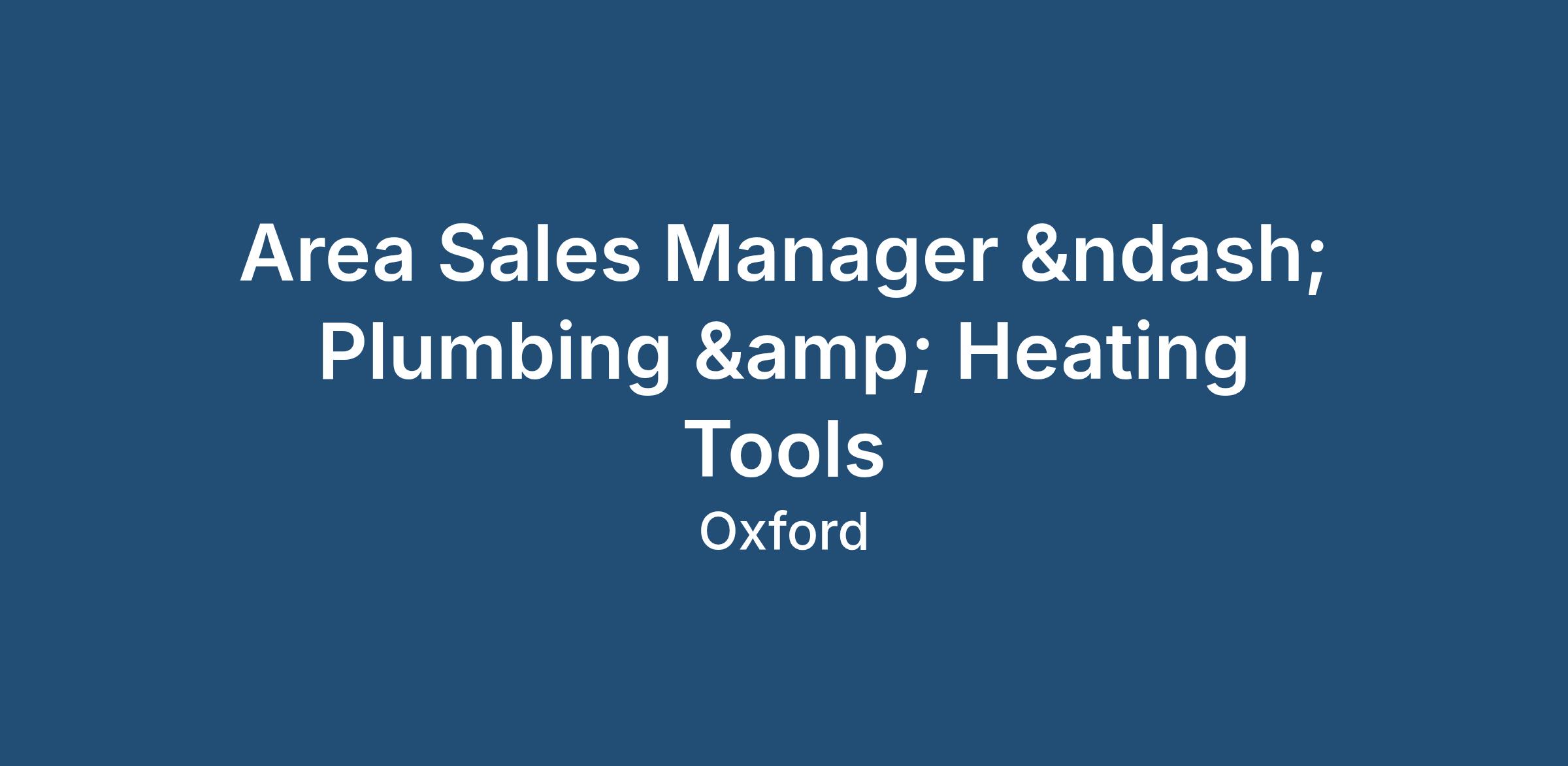 Area Sales Manager – Plumbing & Heating Tools