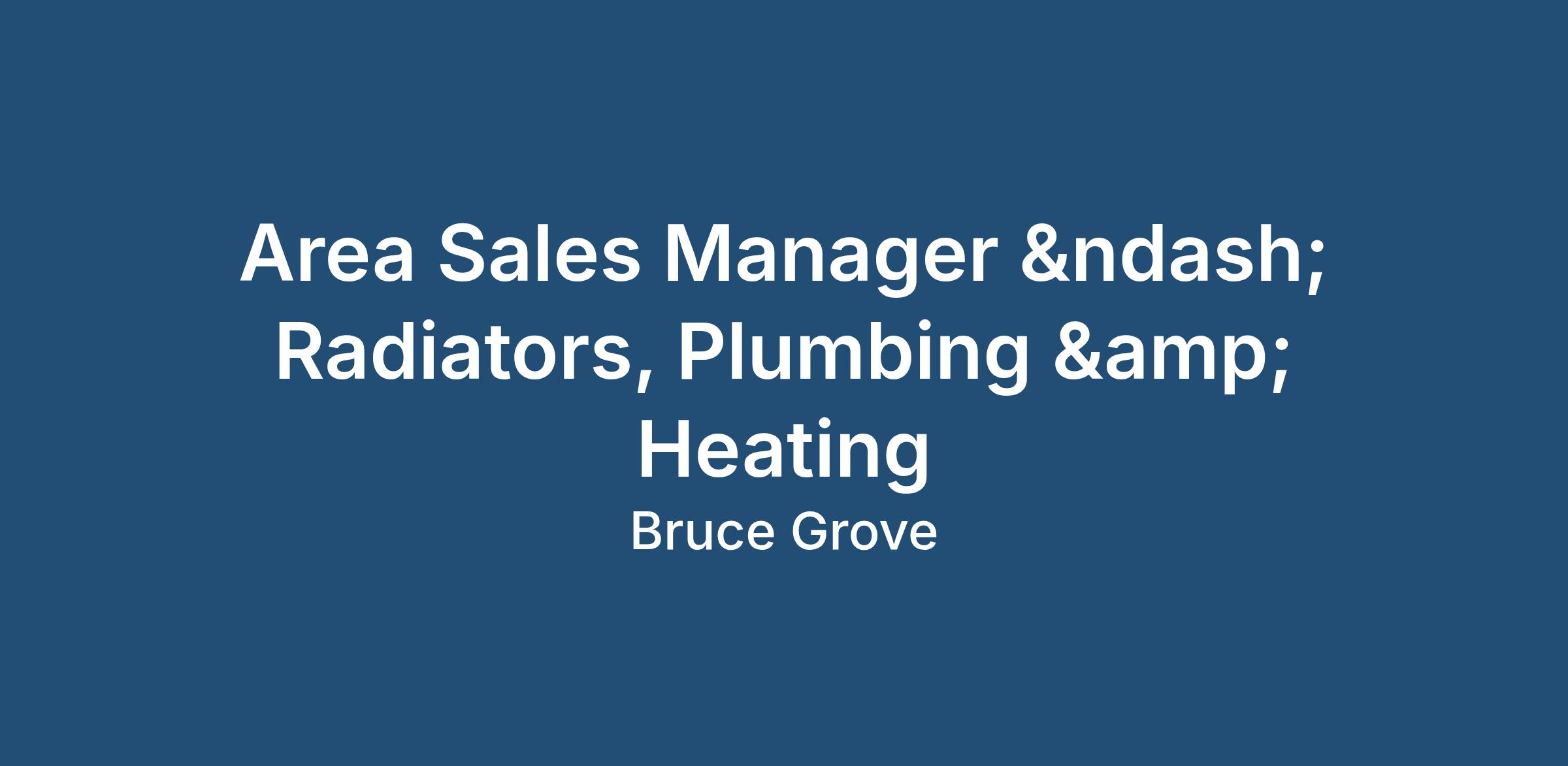 Job Title: Area Sales Manager – Radiators, Plumbing & Heating