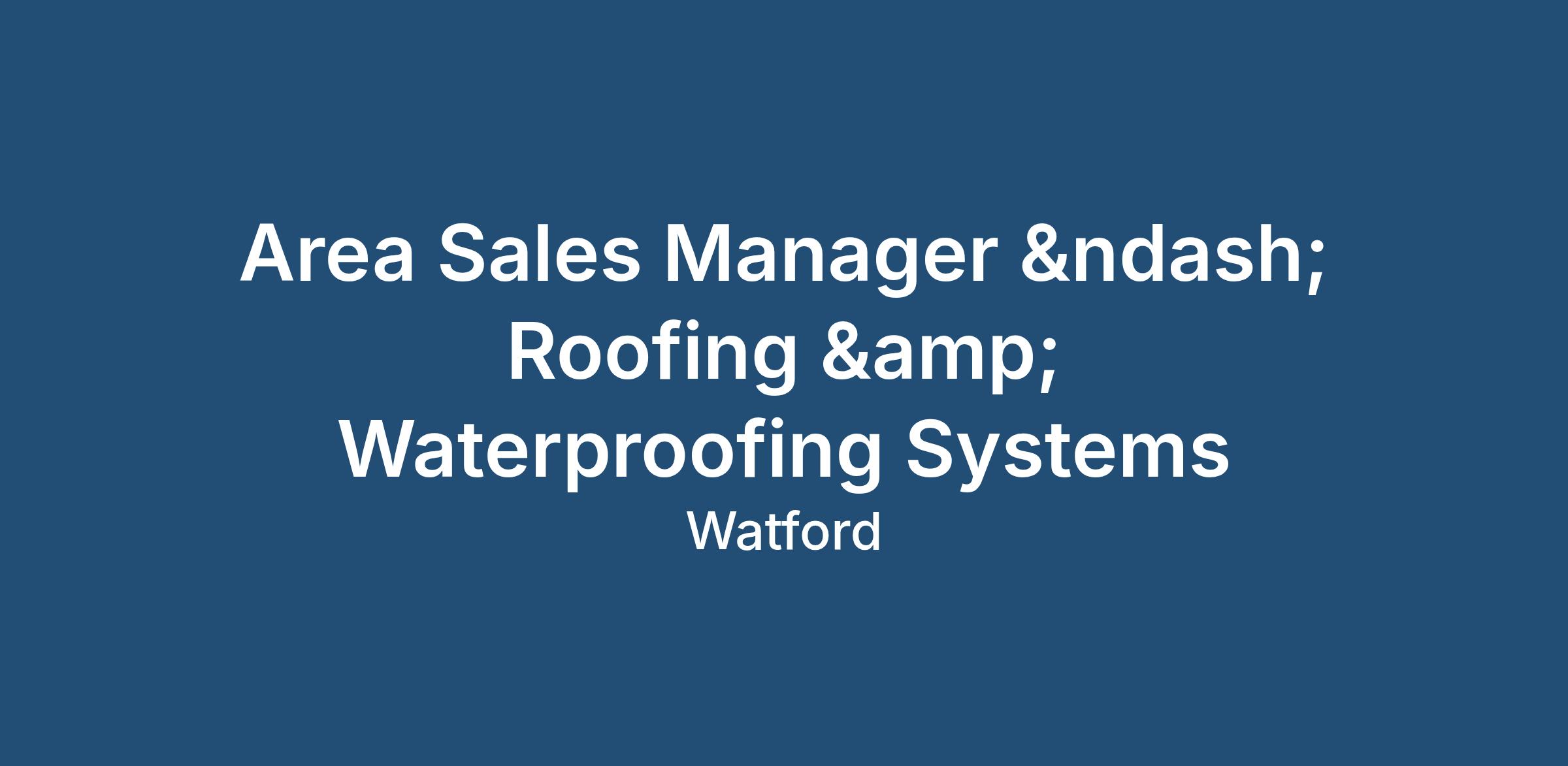 Area Sales Manager – Roofing & Waterproofing Systems