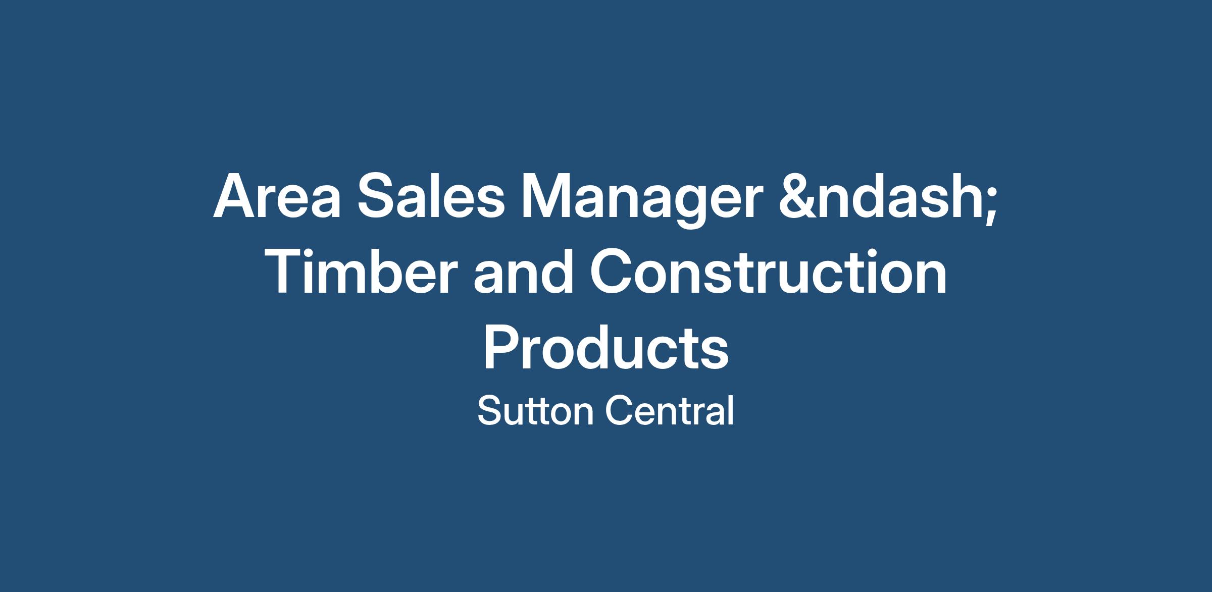Area Sales Manager – Timber and Construction Products