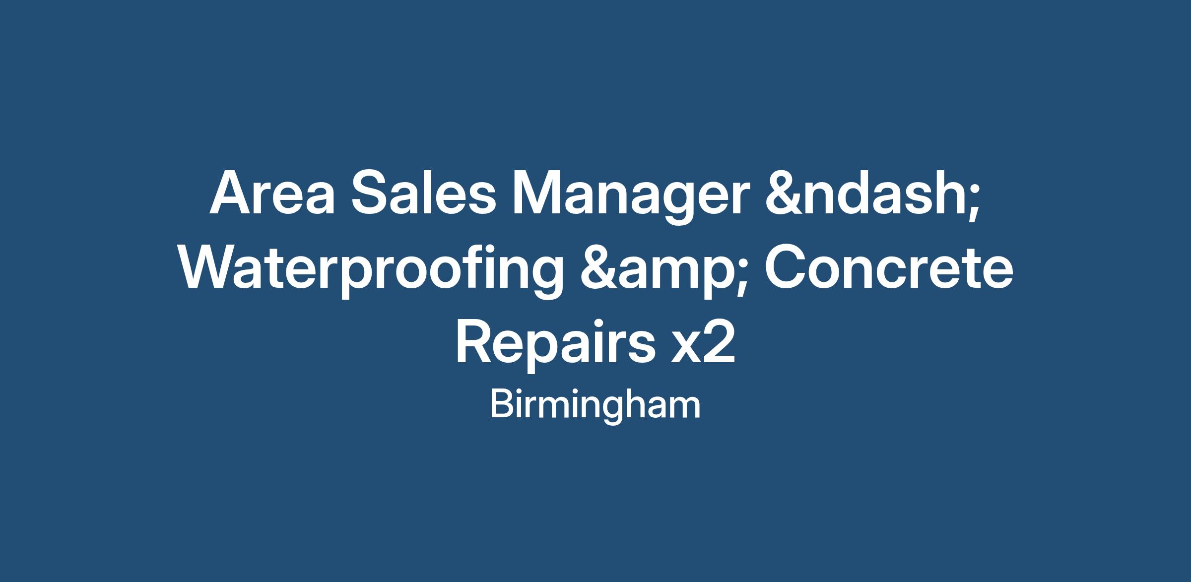 The ideal applicant will be an Technical Sales Manager – Waterproofing & Concrete Repair Products with: