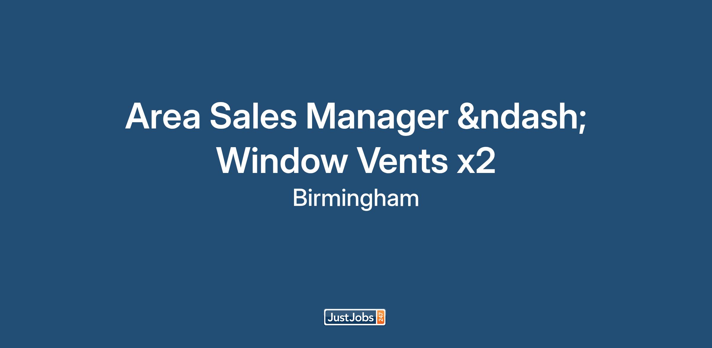 Job Title: Area Sales Manager – Window Ventilation