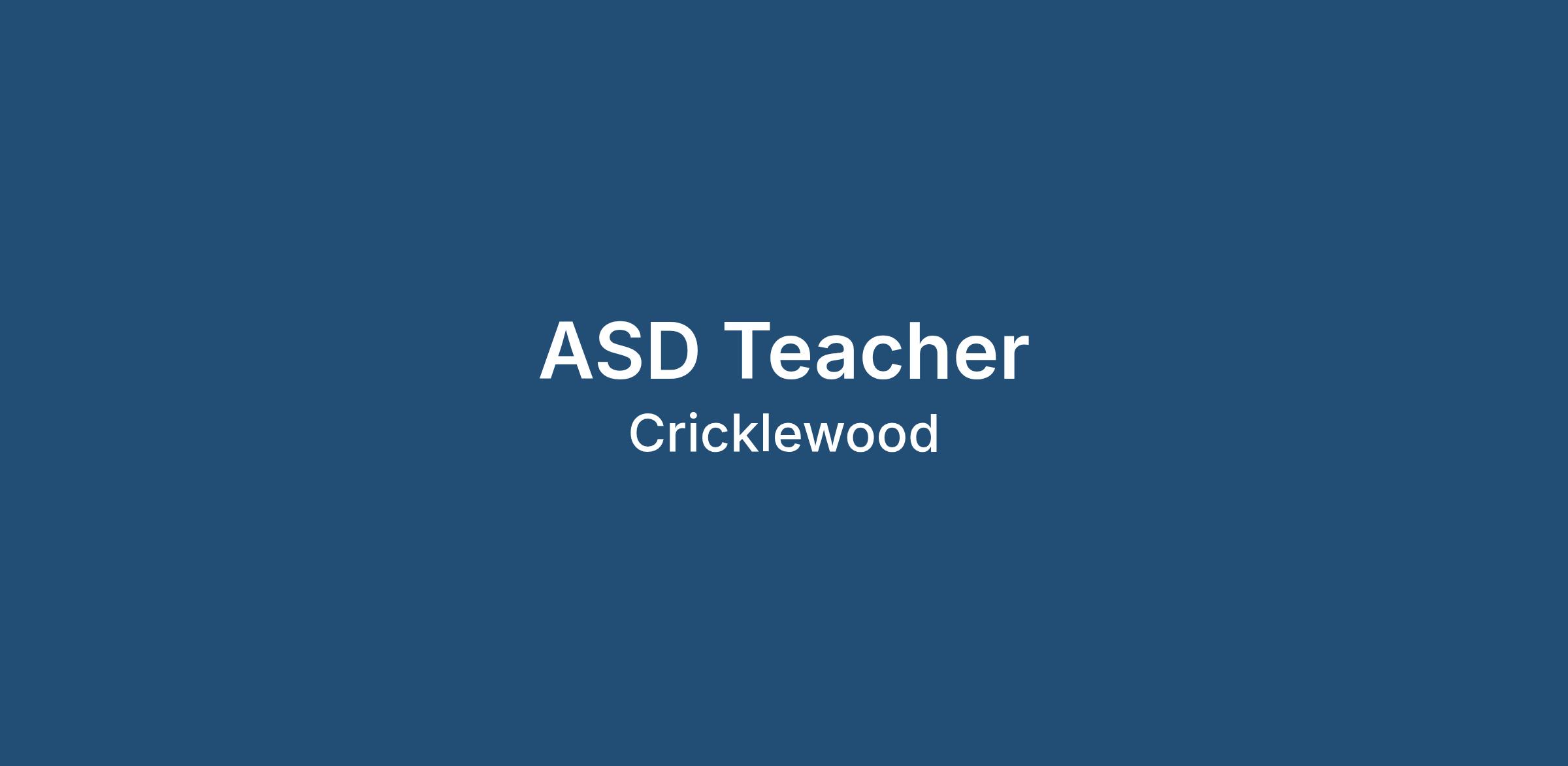 * ASD Teacher – Experience within a SEN or specialist school setting required