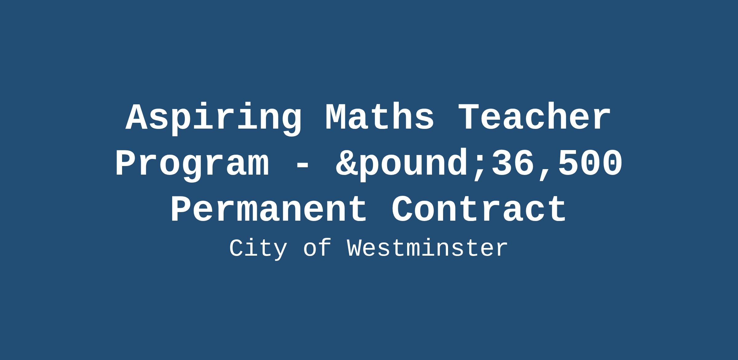 Aspiring Maths Teacher Program - £36,500 Permanent Contract