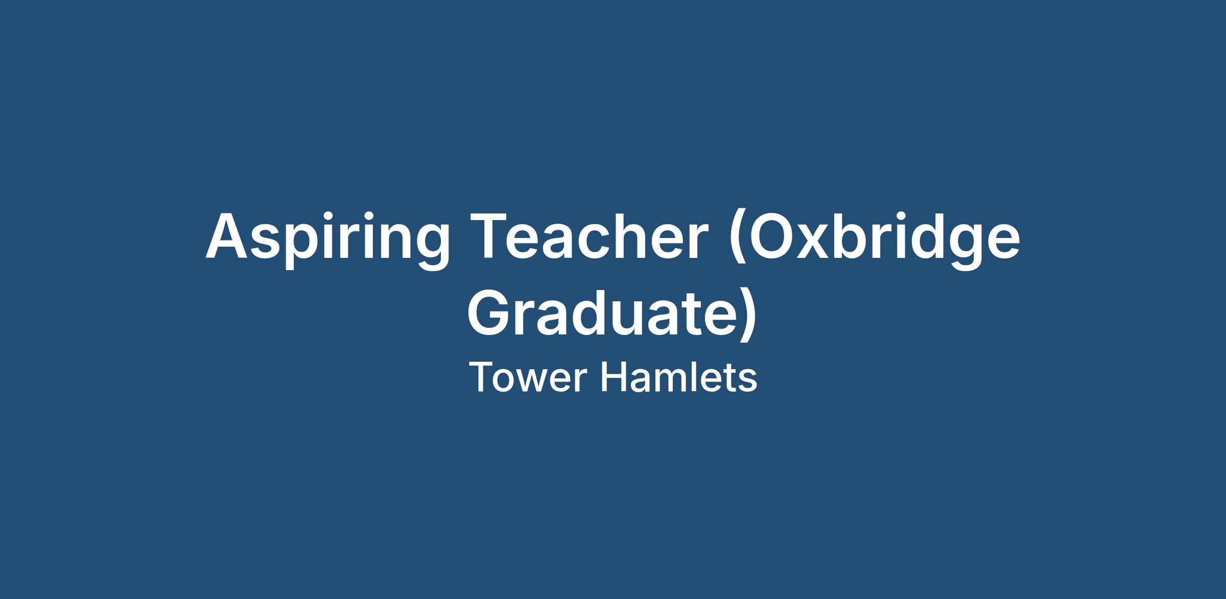 Aspiring Teacher (Oxbridge Graduate) | Outstanding School | Tower Hamlets | Daily Rate £115 - £120