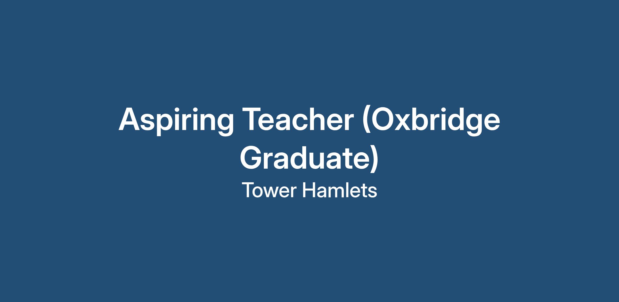 Aspiring Teacher (Oxbridge Graduate) | Outstanding School | Tower Hamlets | Daily Rate £115 - £120
