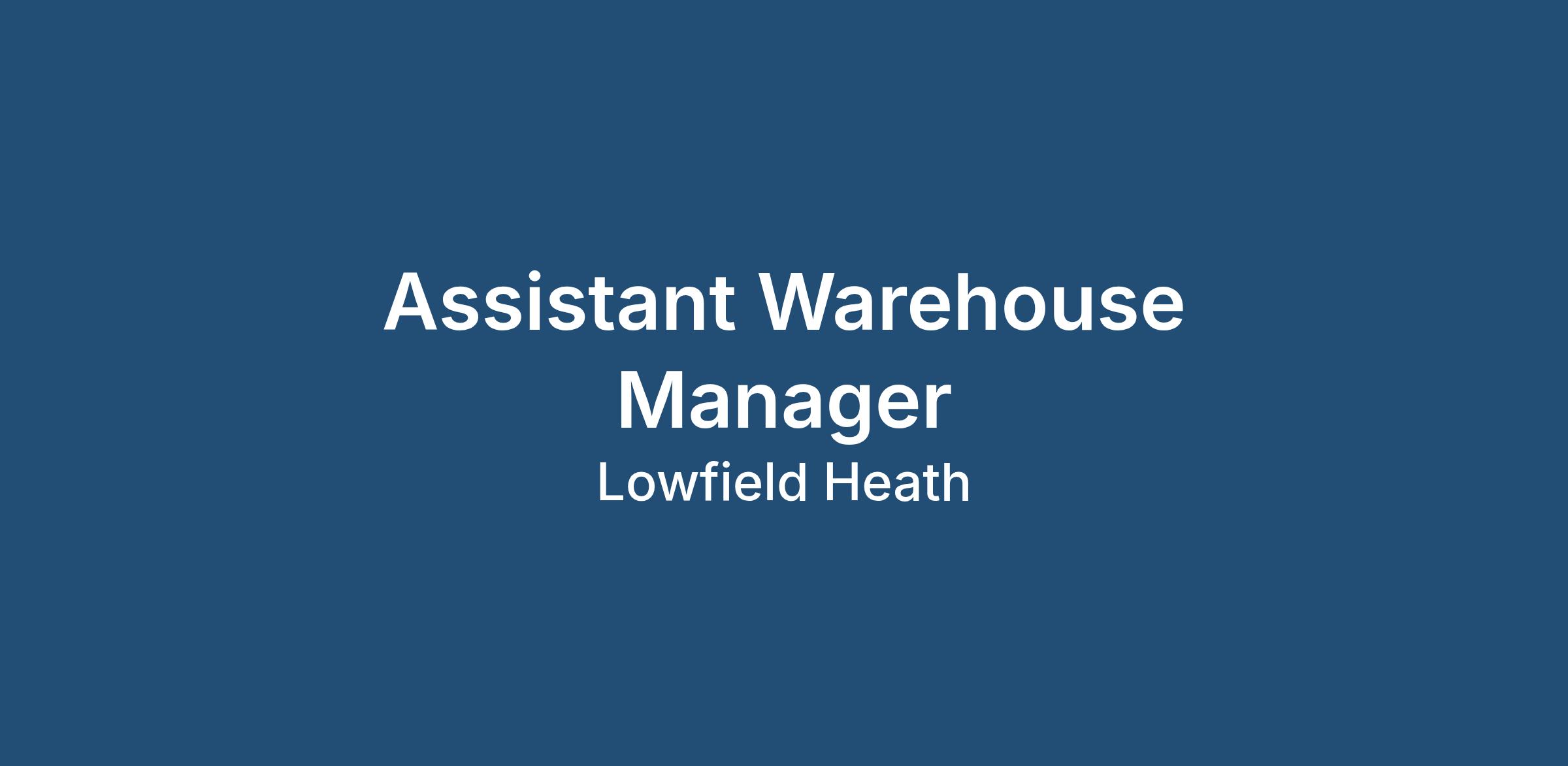 Assistant Warehouse Manager – Join an industry leader in their field!