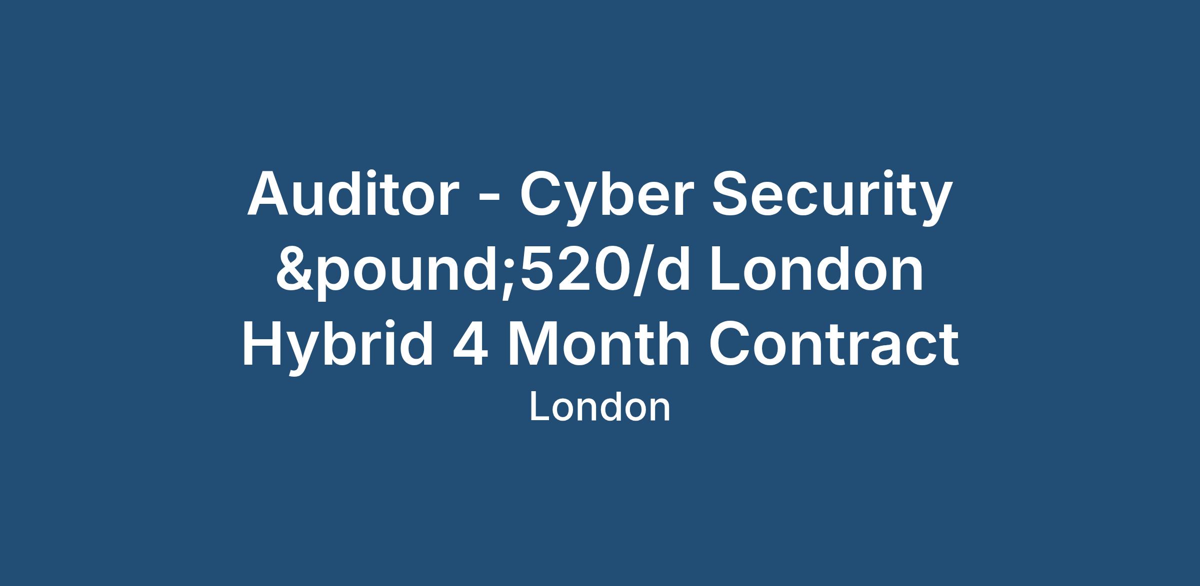 Auditor - Cyber Security £520/d London Hybrid 4 Month Contract