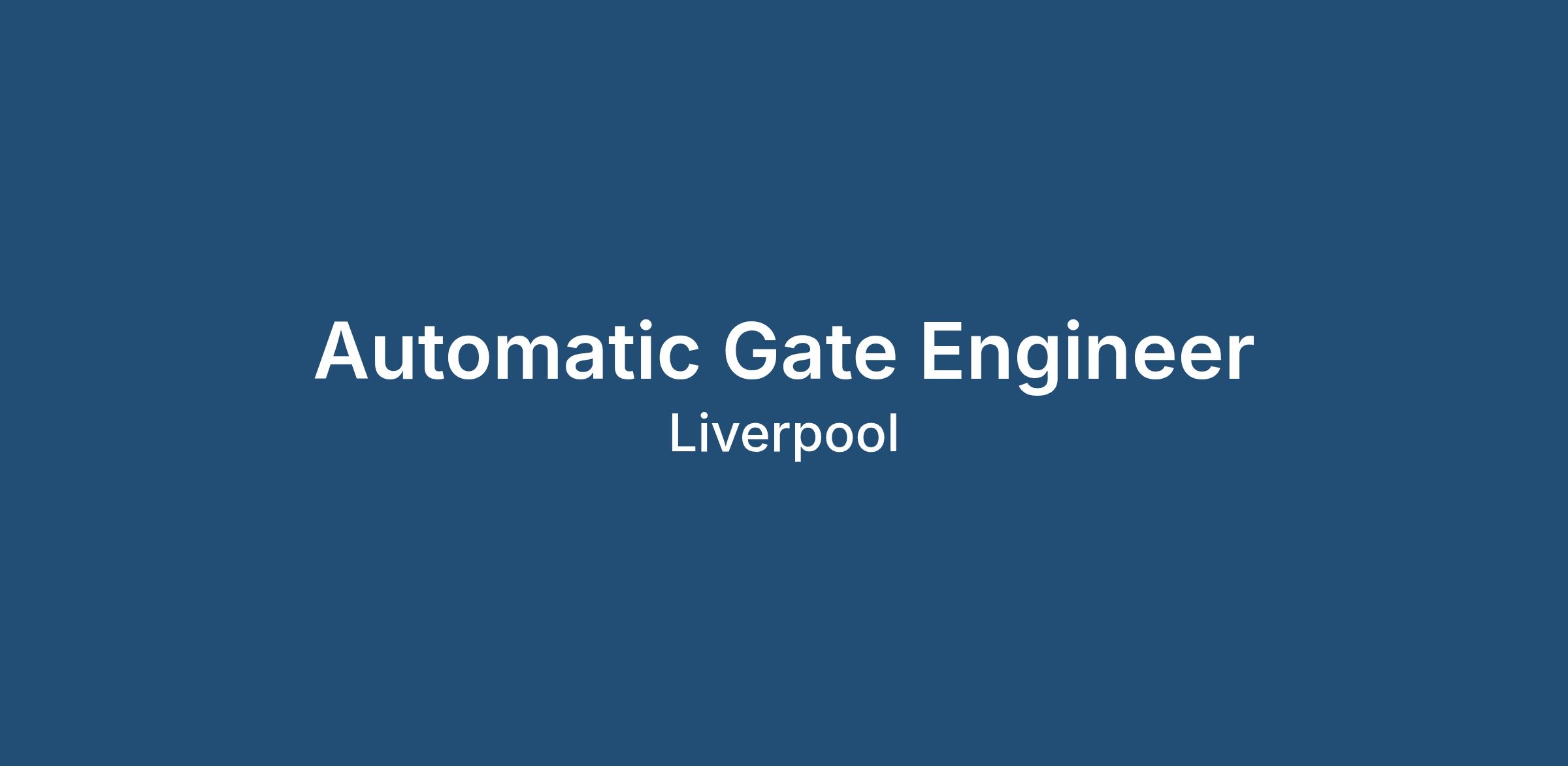 Automatic Gate Engineer – Liverpool– Up to £40,000 basic salary per annum