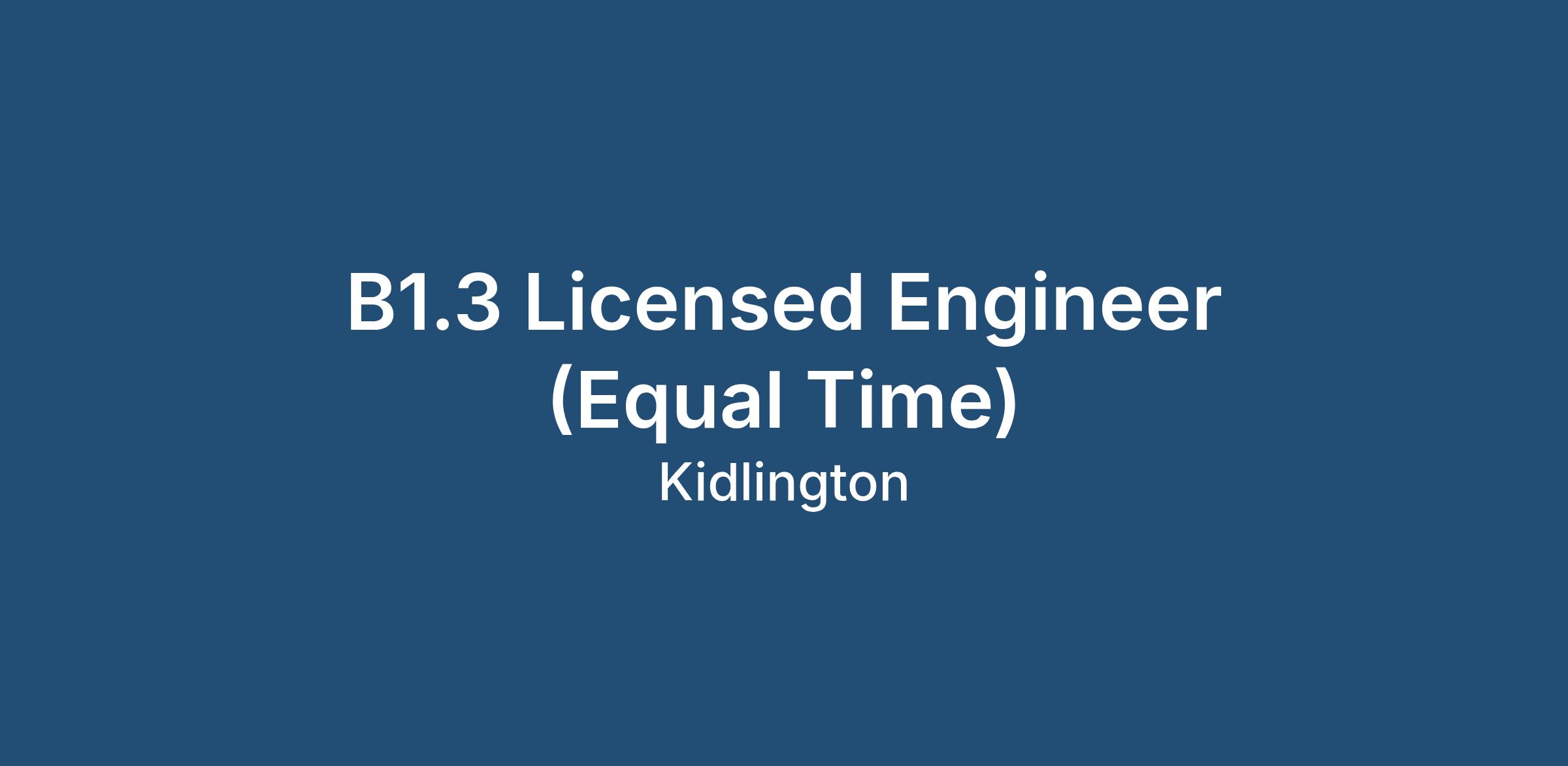 Description/Overall purpose of the Job for the B1.3 Licensed Engineer
