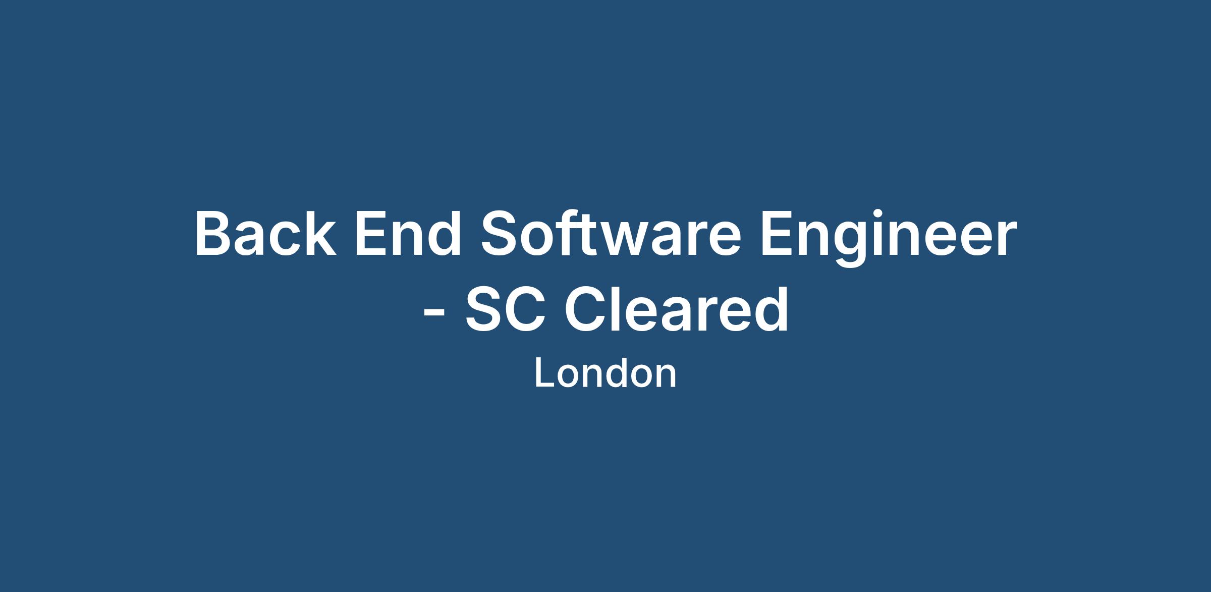 Back End Software Engineer - SC Cleared