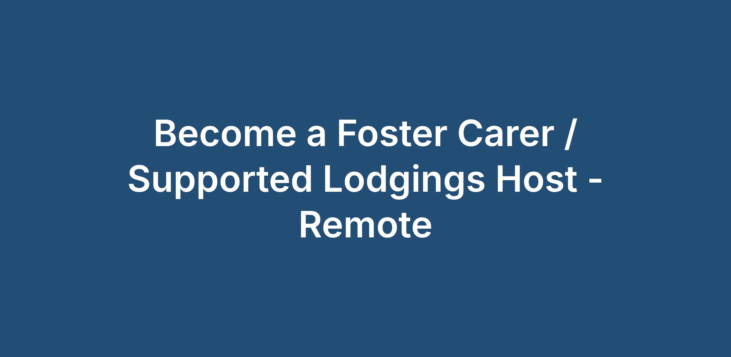 Become a Foster Carer / Supported Lodgings Host - Remote