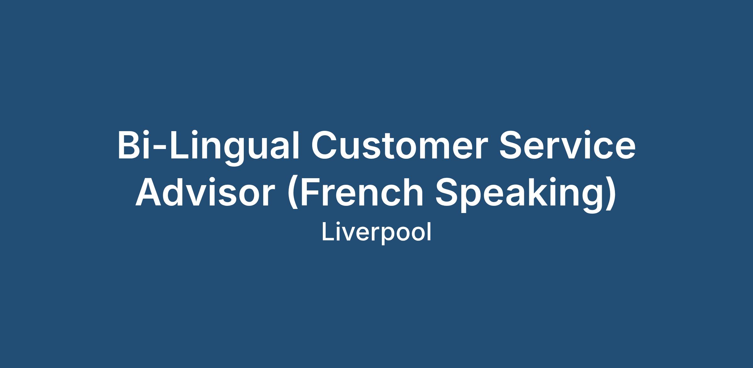 Job Title: Bi-Lingual Customer Service Advisor (French Speaking)