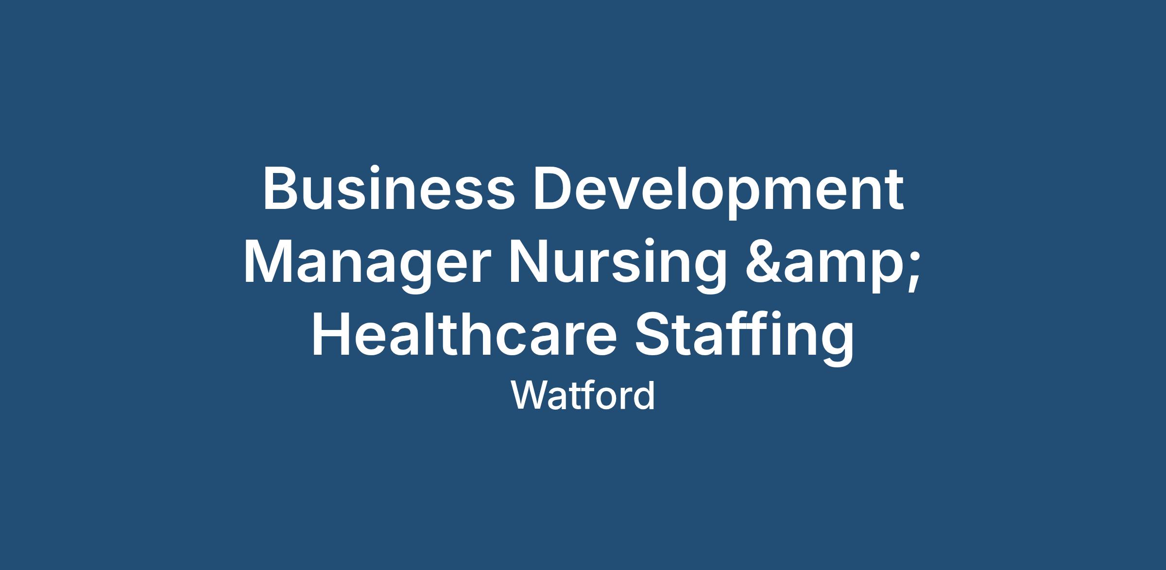Business Development Manager Nursing & Healthcare Staffing