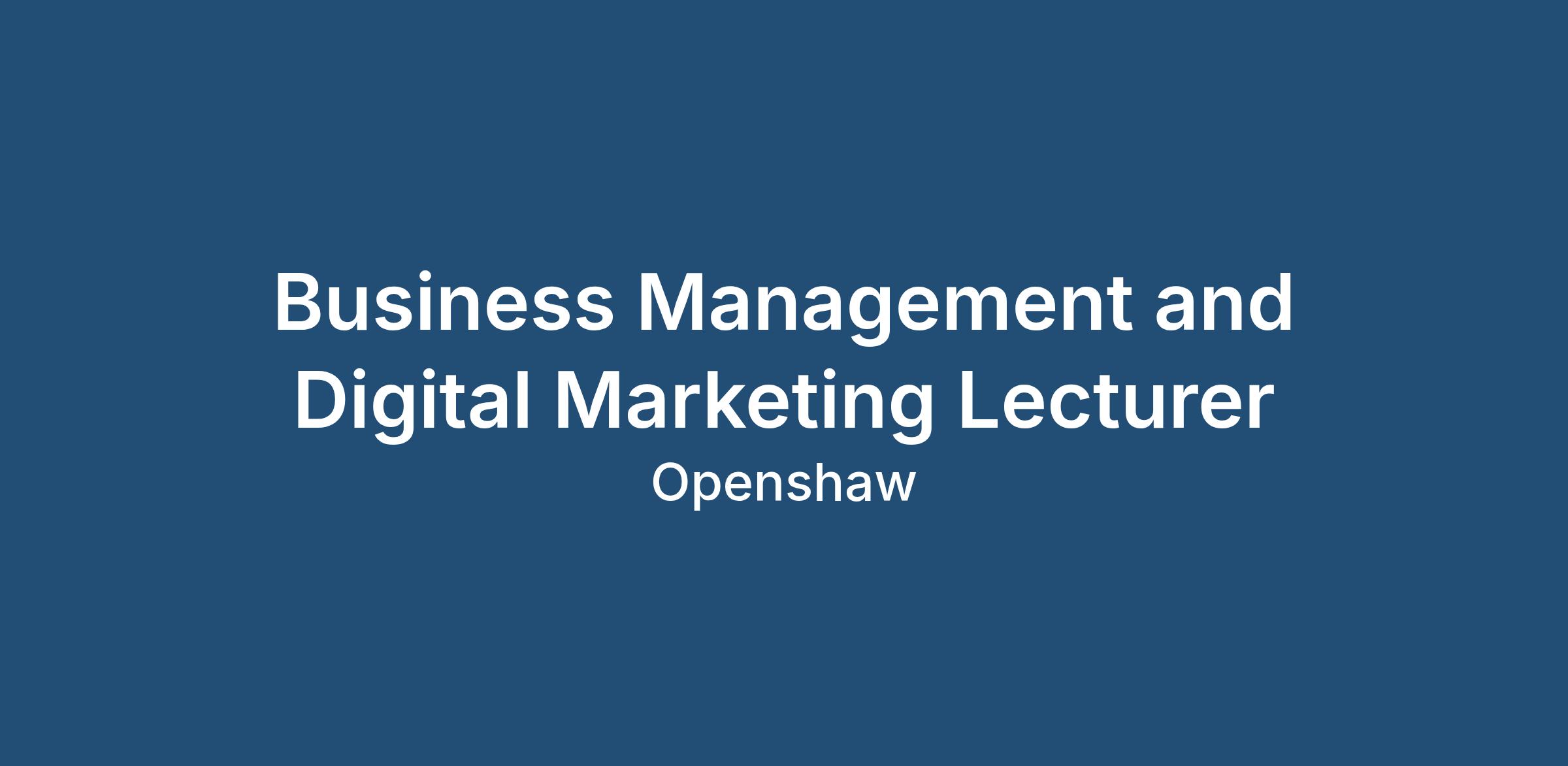 Business Management and Digital Marketing LecturerDepartment: AcademicLocations Available: ManchesterPosition Type: Permanent - 6x Full-Time positions and 1x Part-Time position availableWorking Hours: 37.5 hours per weekWorking Pattern: Monday to FridayReports To: Course DirectorJob OverviewUK Management College is seeking an enthusiastic andknowledgeable Lecturer in Business Management and Digital Marketing to deliverhigh-quality teaching across business and digital marketing modules. Thepostholder will contribute to an engaging learning environment, support studentachievement, and ensure curriculum content reflects current industry practiceand academic standards.Key ResponsibilitiesTeaching and Learning