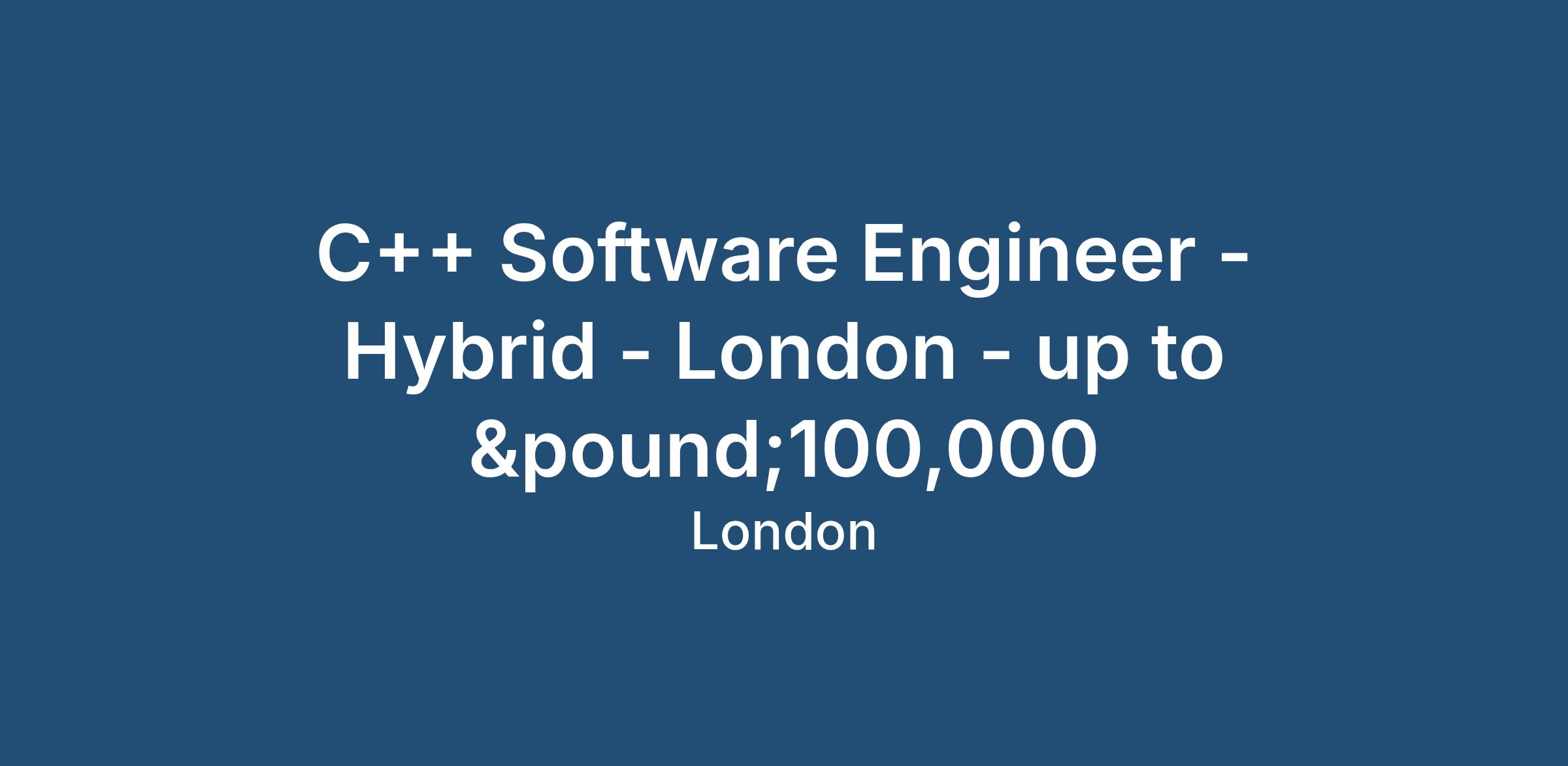 C++ Engineer - Hybrid Role - London - £(phone number removed)