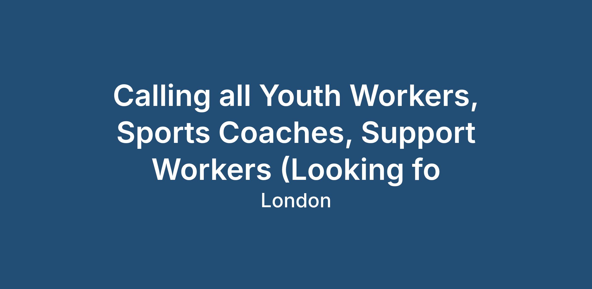 Calling all Youth Workers, Sports Coaches, Support Workers (Looking fo