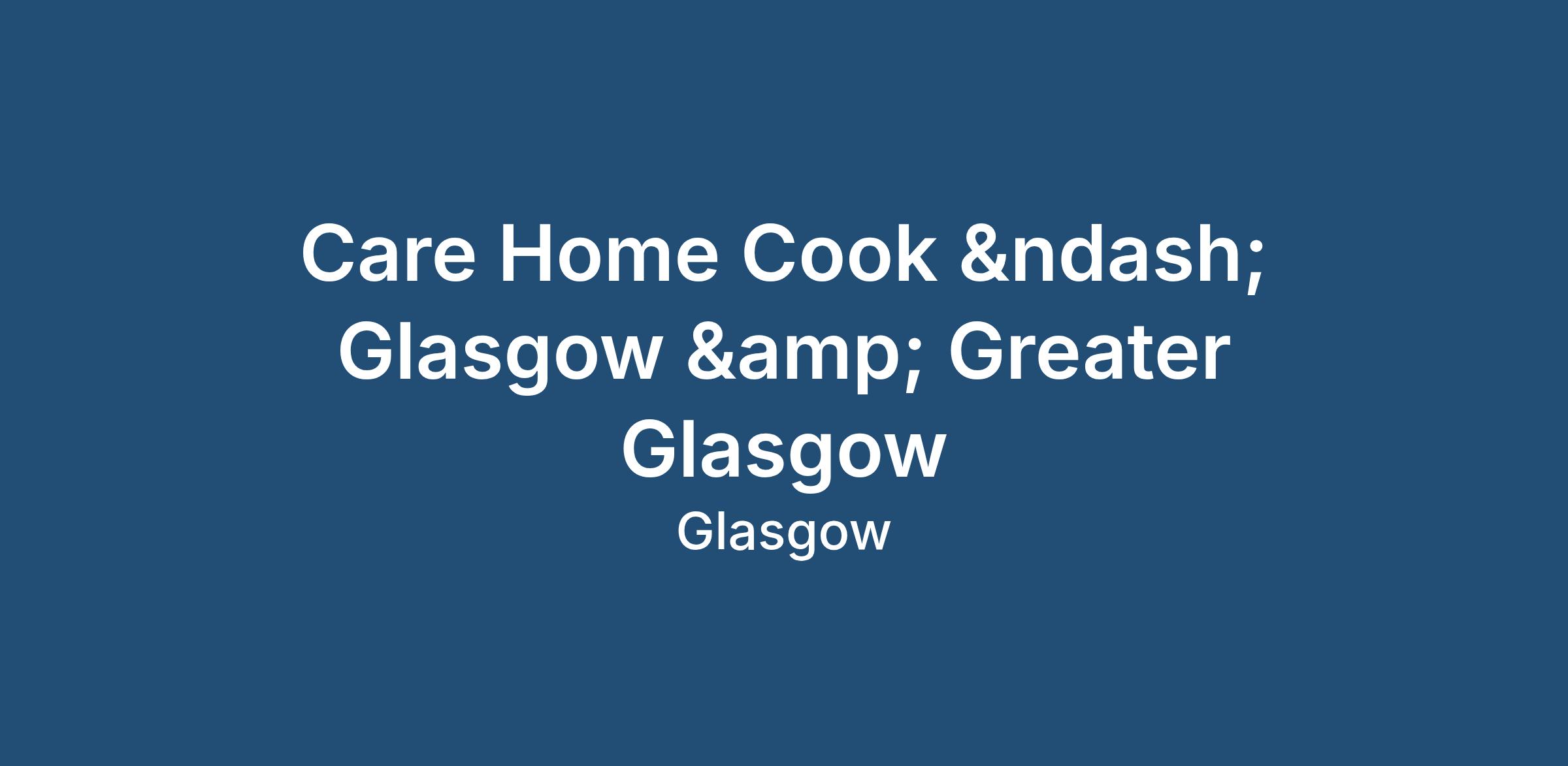 Care Home Cook – Glasgow & Greater Glasgow