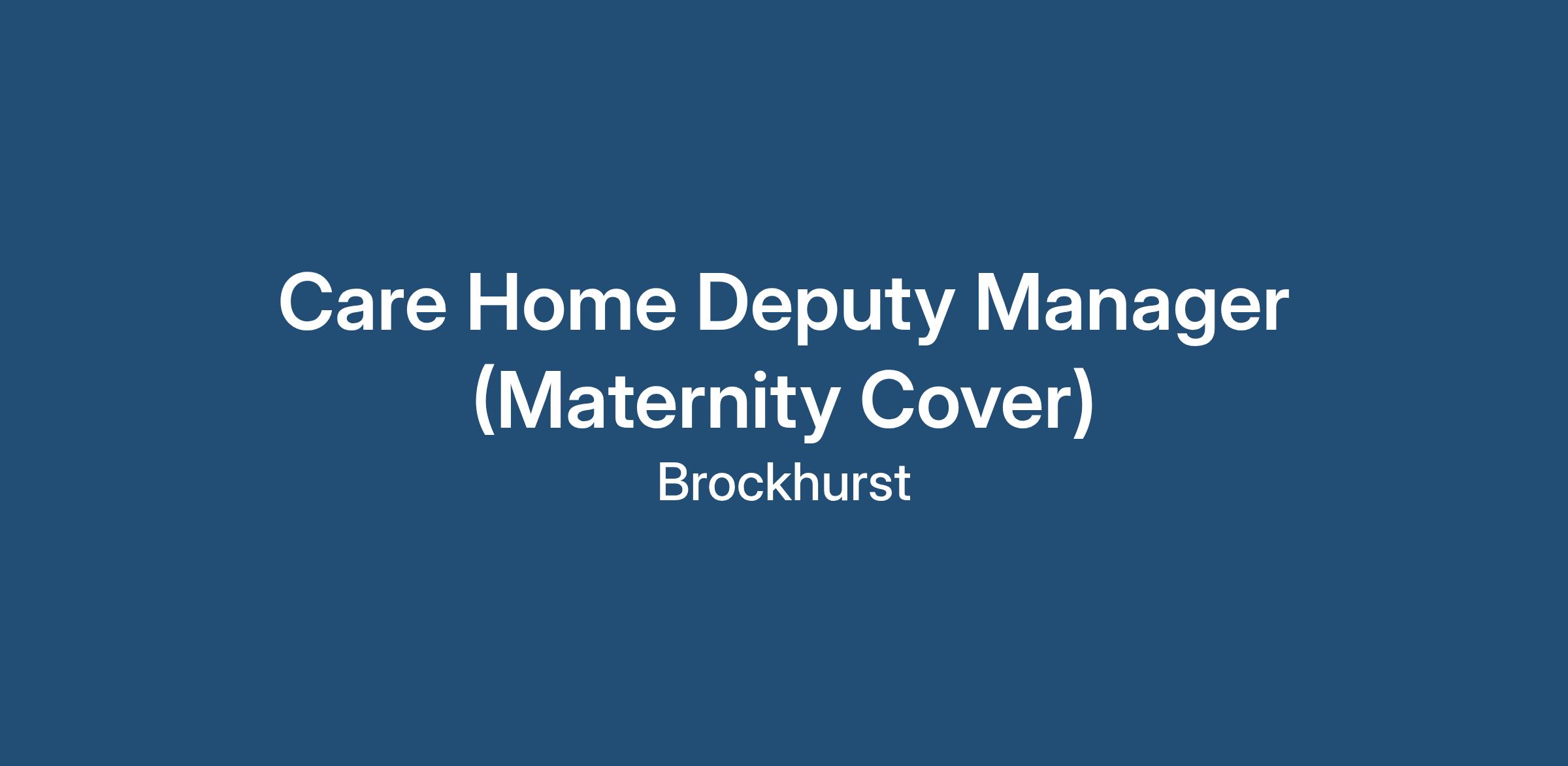 Care Home Deputy Manager (Maternity Cover) – Quality, Systems and Risk Manager