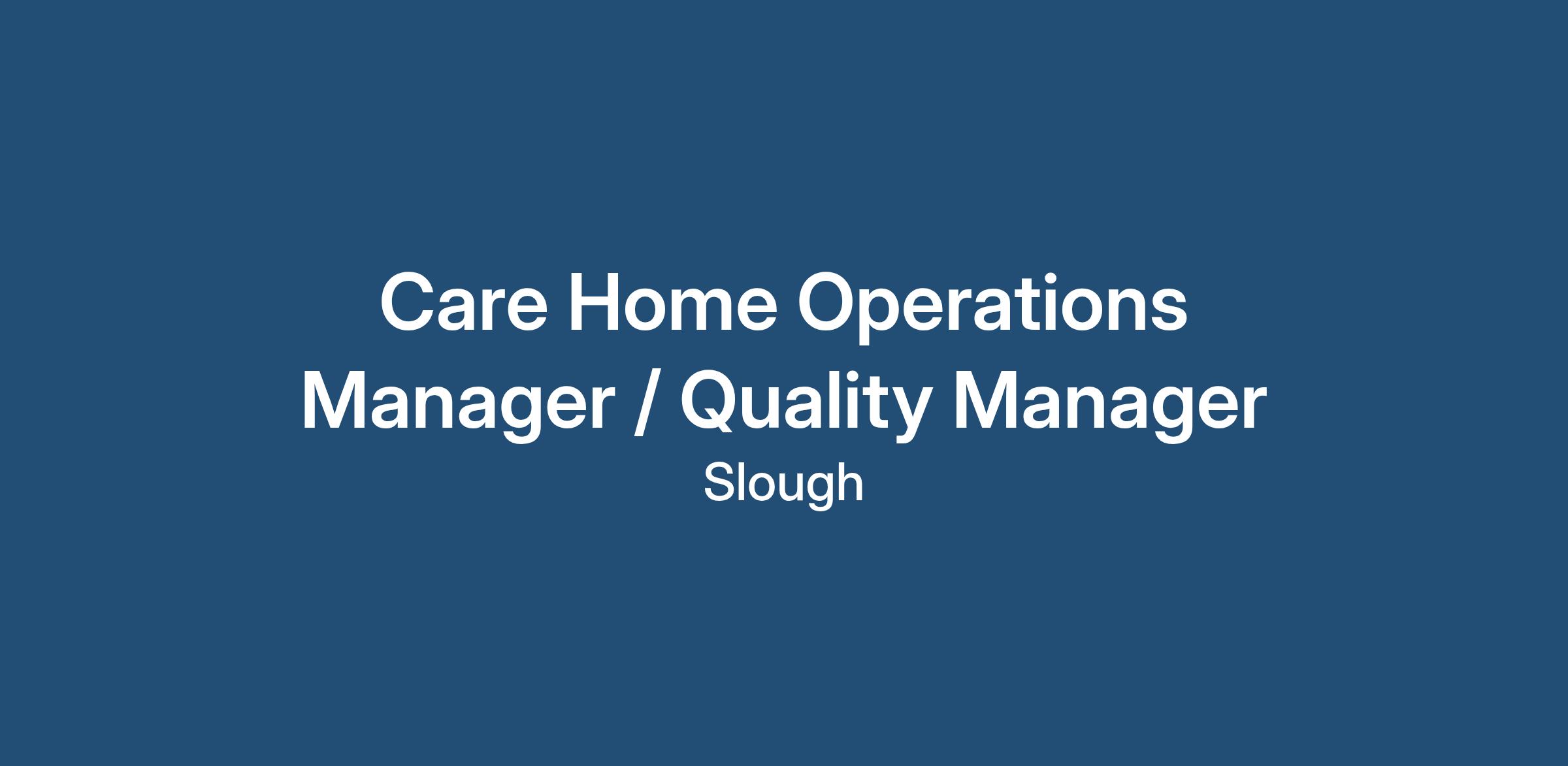 Operations Manager Care Homes | Quality Manager Elderly Care | CQC Compliance | Governance | Multi-Site Care Home Role