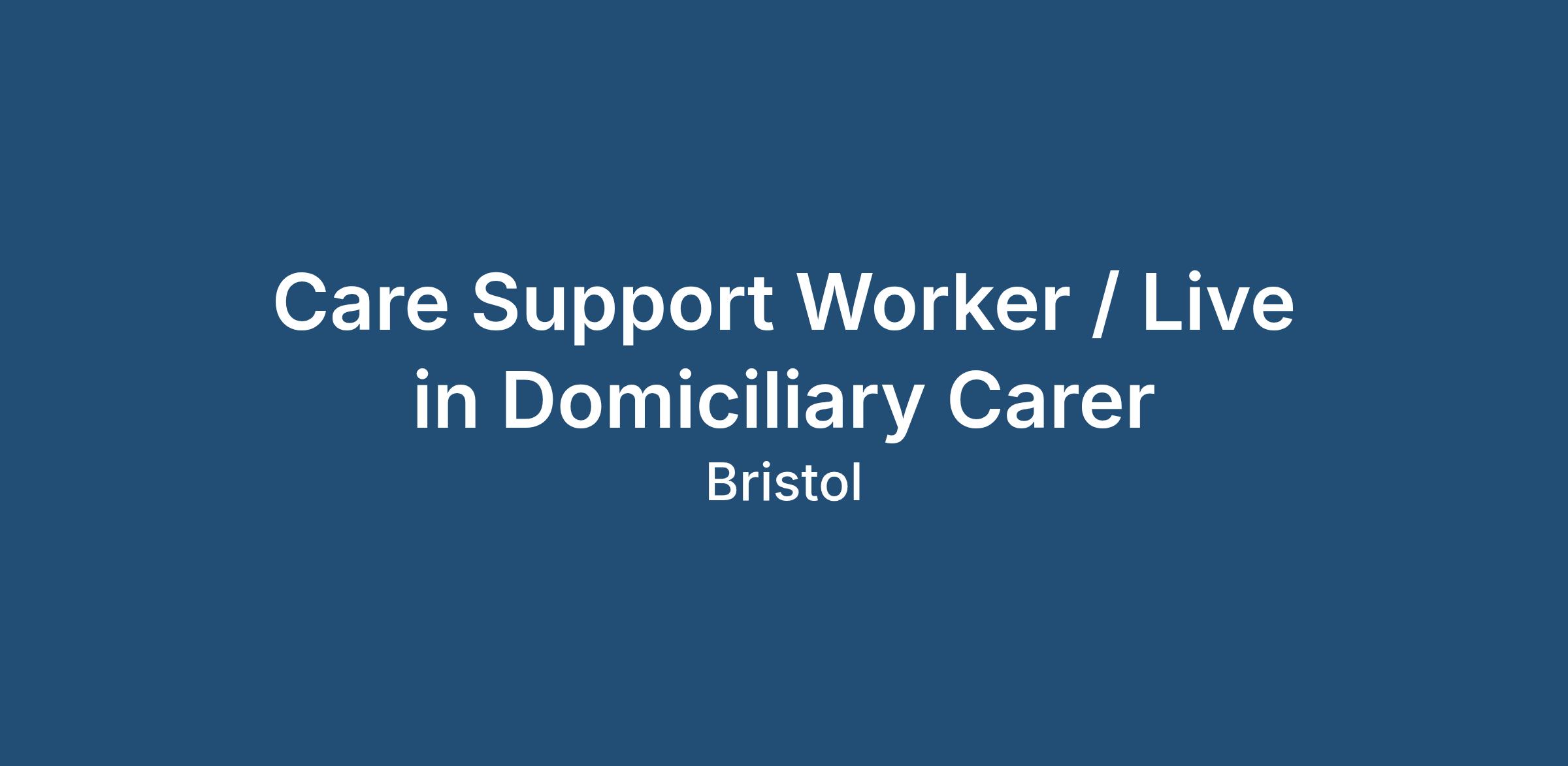 Live-In Care Support Worker / Live in Domiciliary Carer