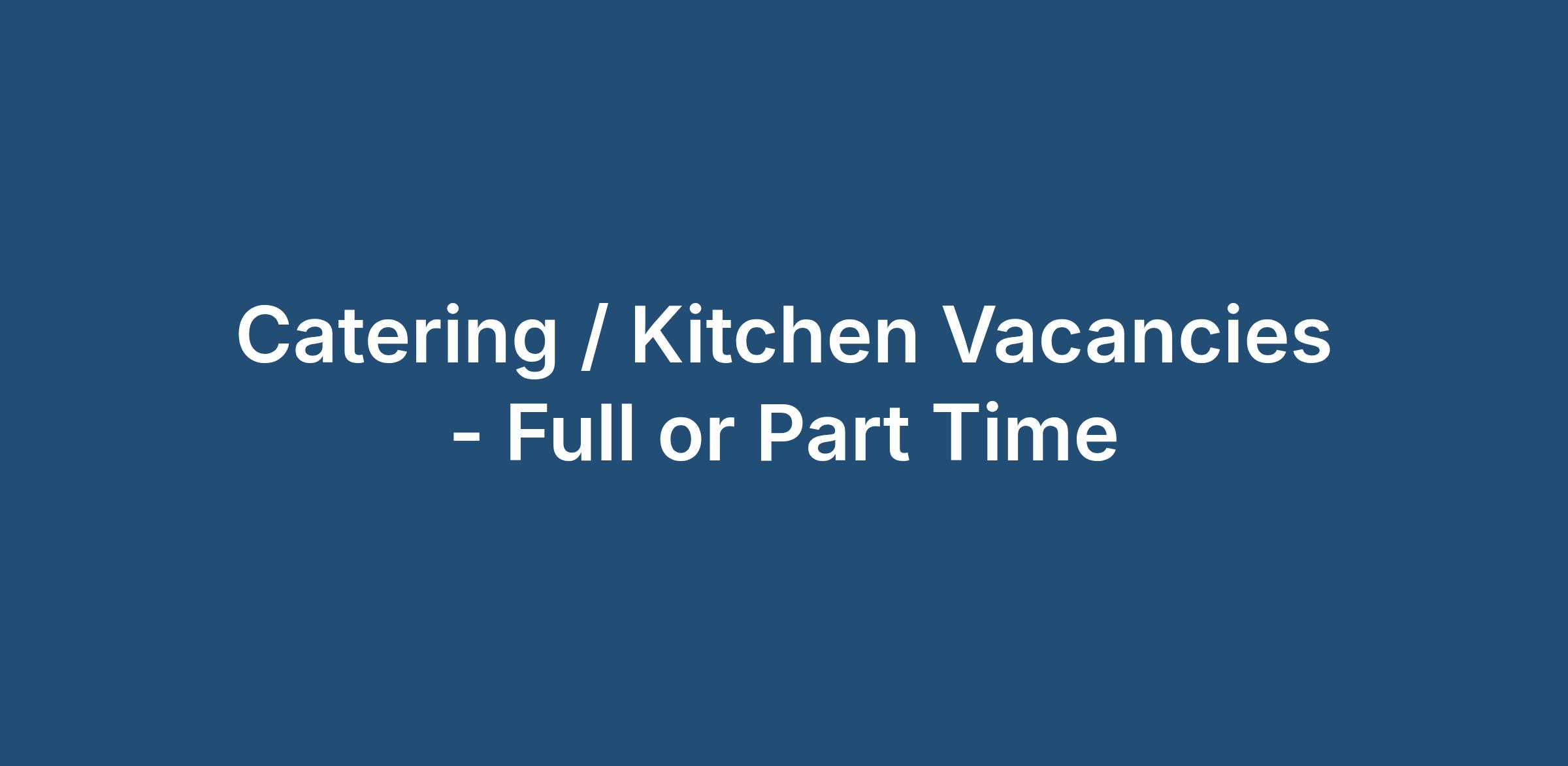 Catering / Kitchen Vacancies - Full or Part Time