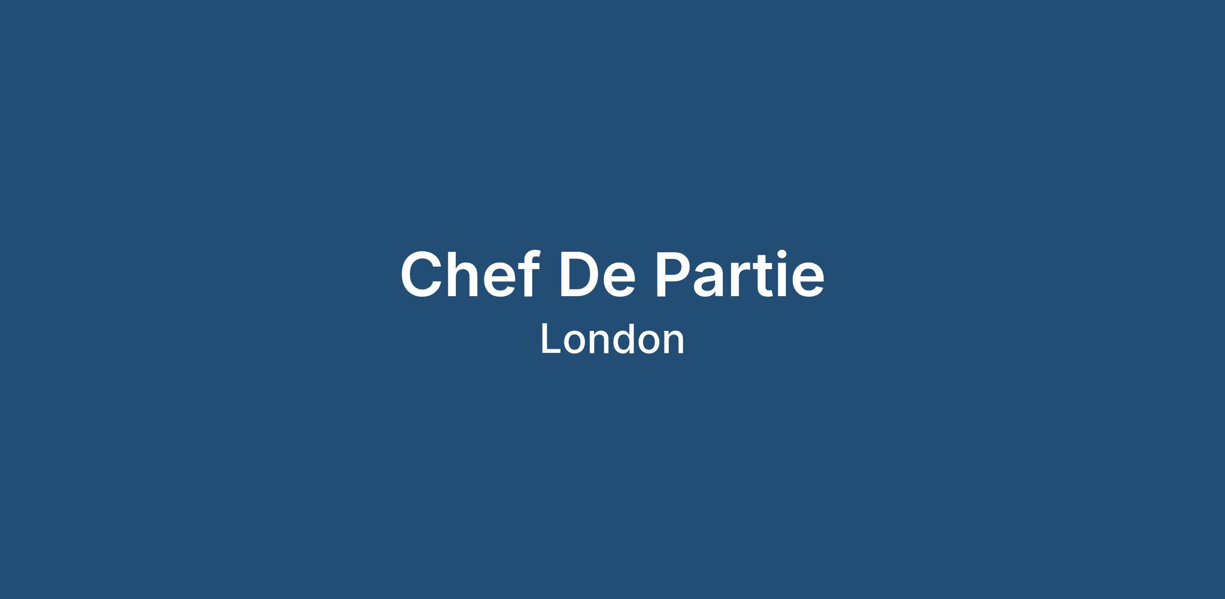 If you are a committed Chef de Partie looking for your next opportunity in London, please apply today with your CV.