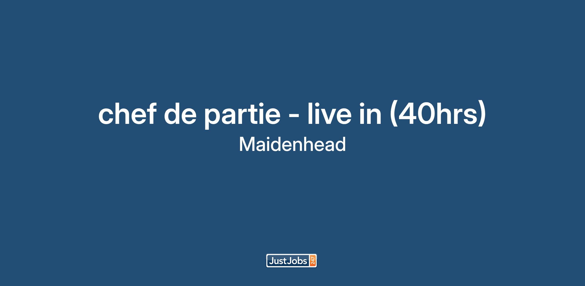 chef de partie, required in Berkshire, 40 hrs, paid overtime & basic is £30000 (40hrs) + service/tips (around £1k), with live in available and straight shifts. This chef de partie role will cover a section in one of the main kitchen sections in the kitchen.