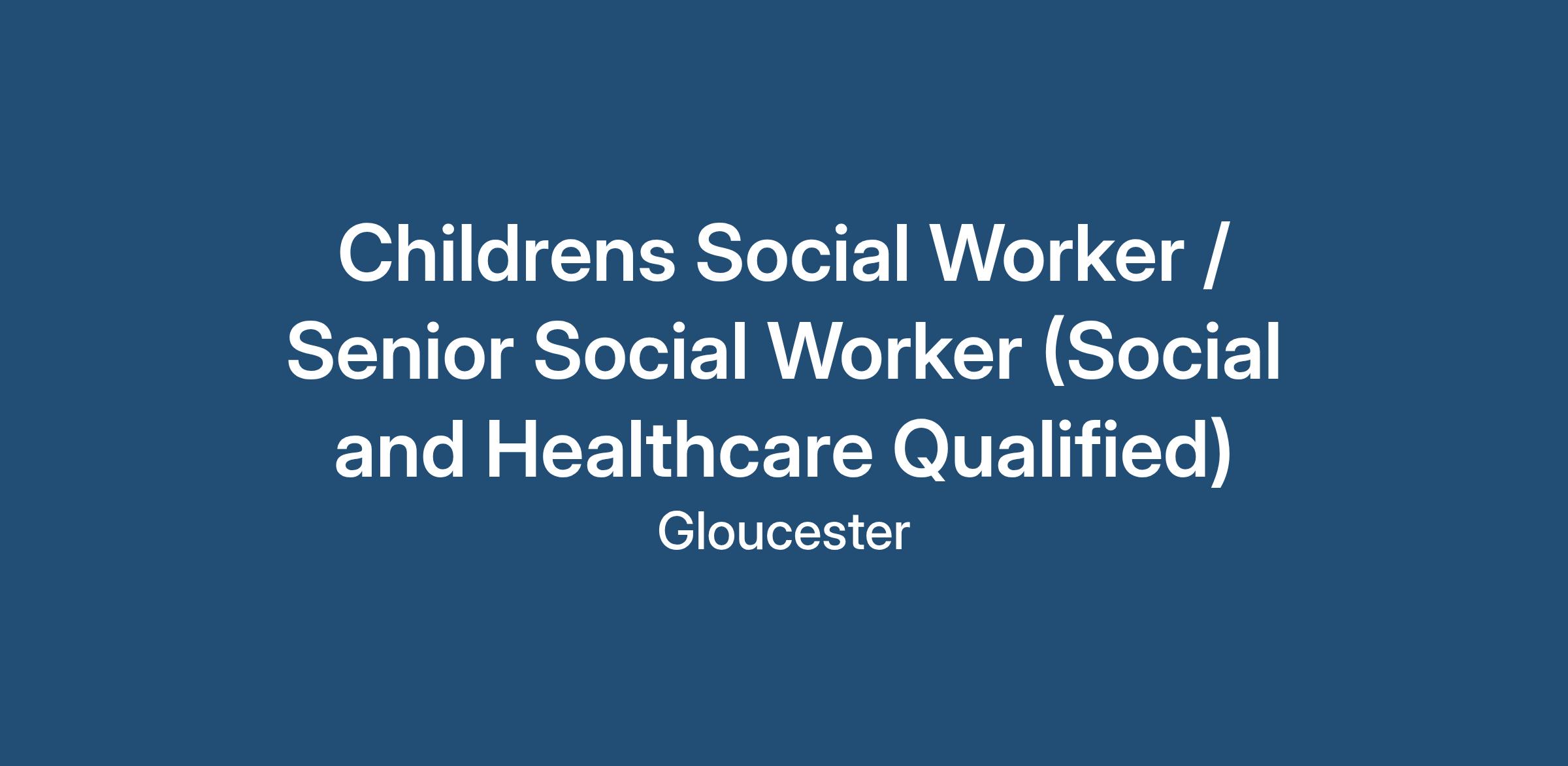 Childrens Social Worker / Senior Social Worker (Social and Healthcare Qualified)
