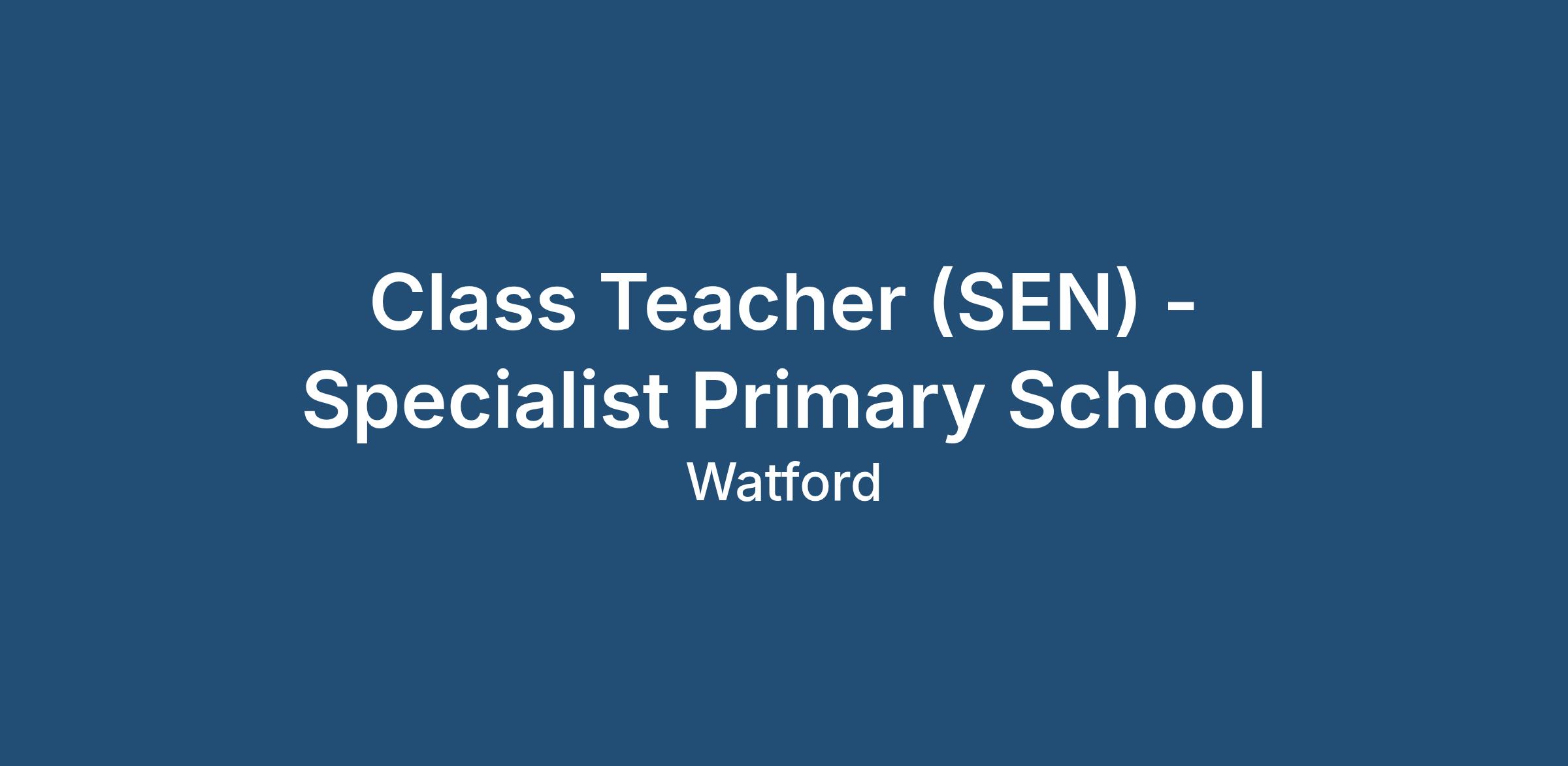 Class Teacher (SEN) - Specialist Primary School
