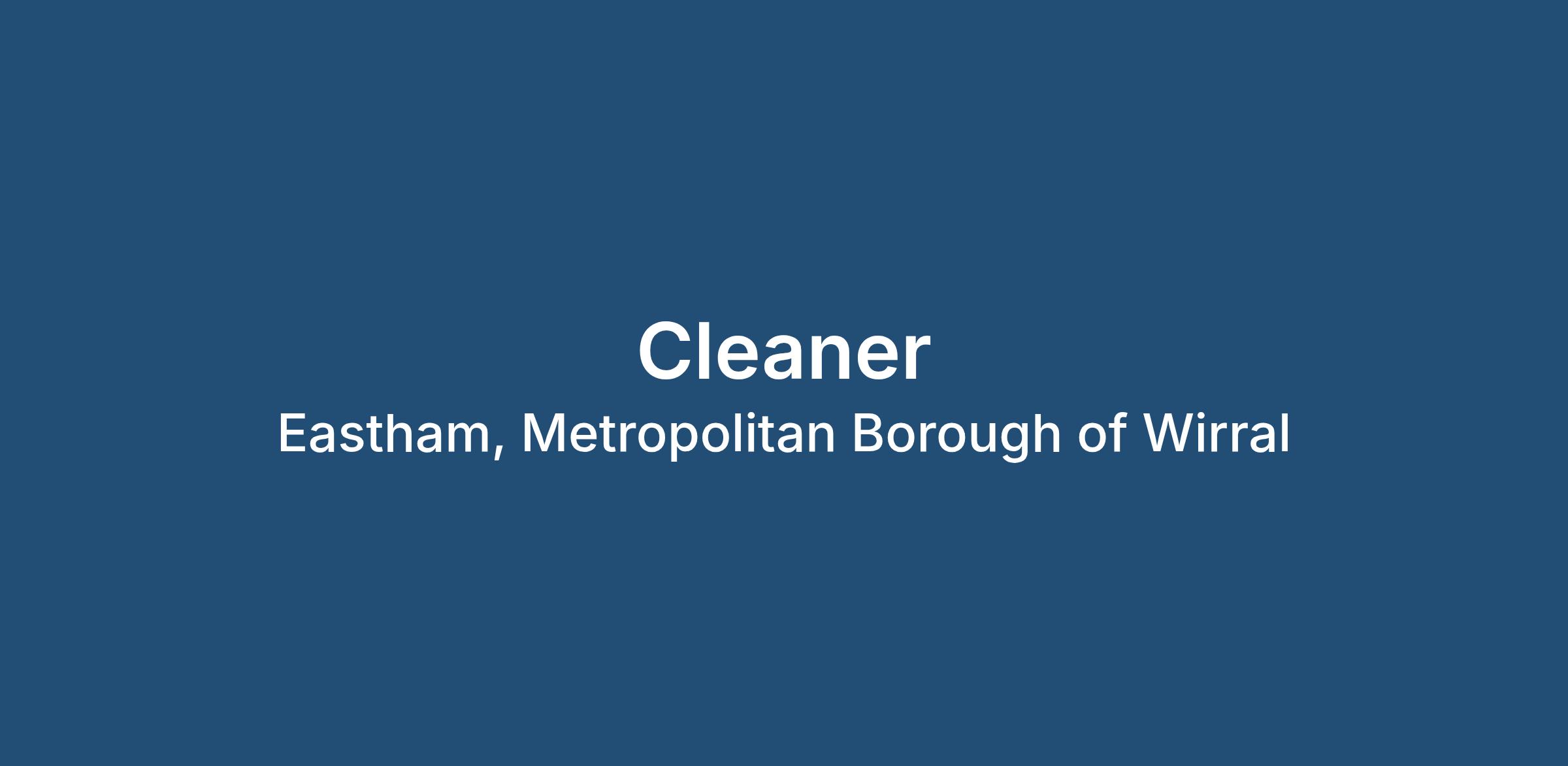 Details: We are looking for a cleaner over at a new job in Birkenhead,(1 toilet block + 2 offices + canteen + drying room). The start date for the new job would be from Thursday (16th). We'd be looking for 12-20hrs a week i.e. 3-5 4hr shifts