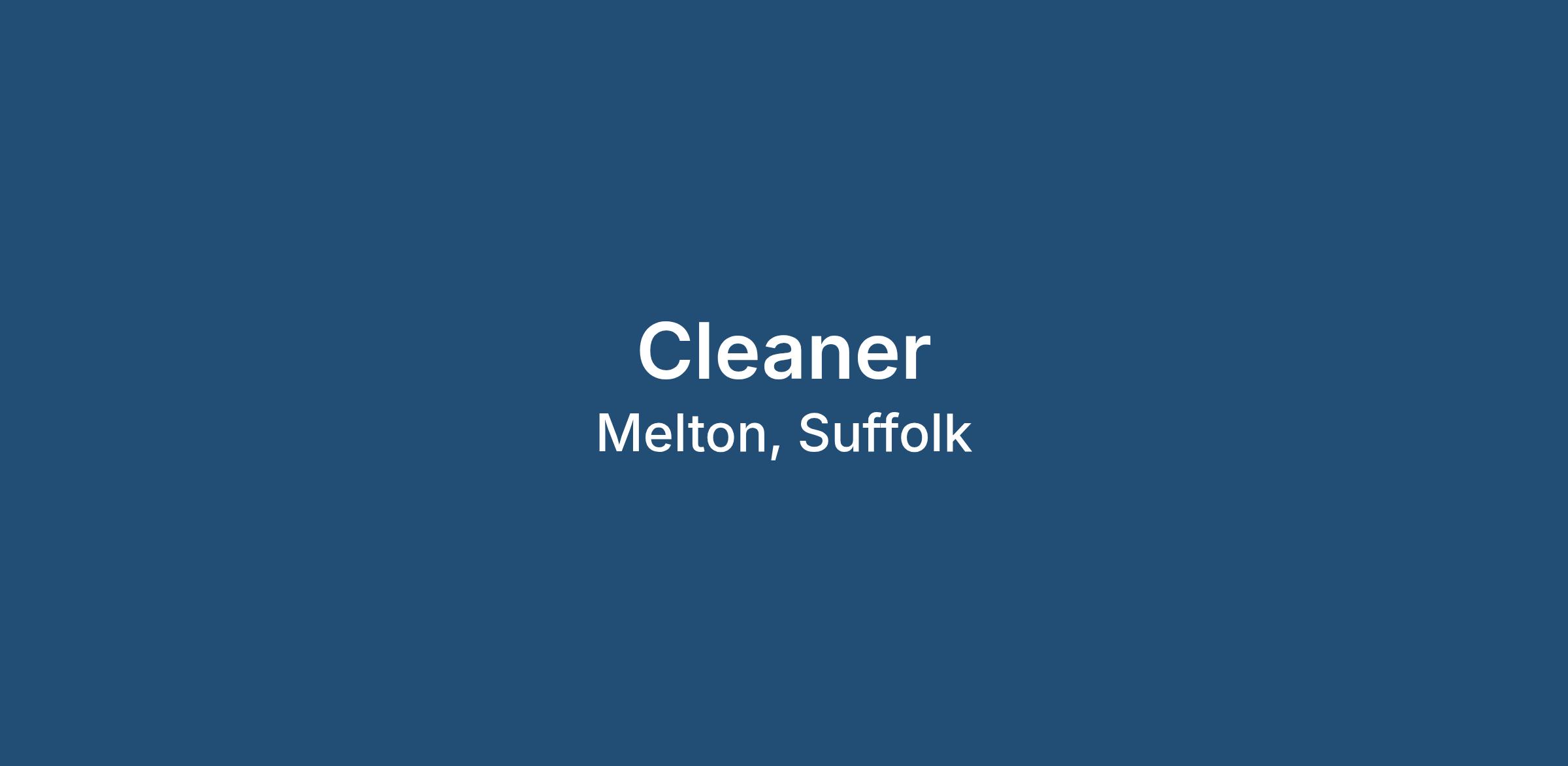 If you are interested in this Cleaner role based Woodbridge near Ipswich, then please apply for further information