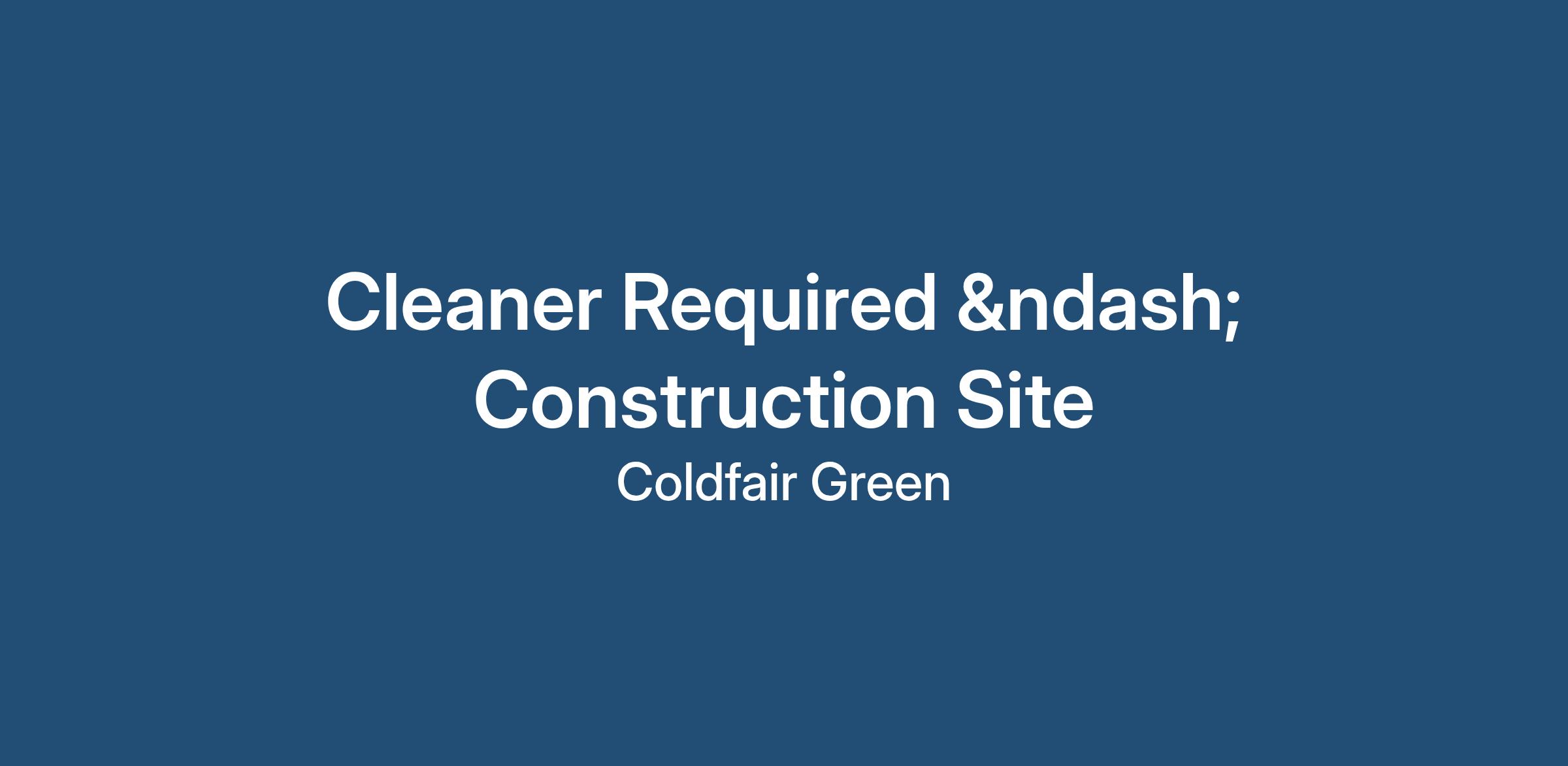 Cleaner Required – Construction Site (Mid January start | 18-Month Contract)