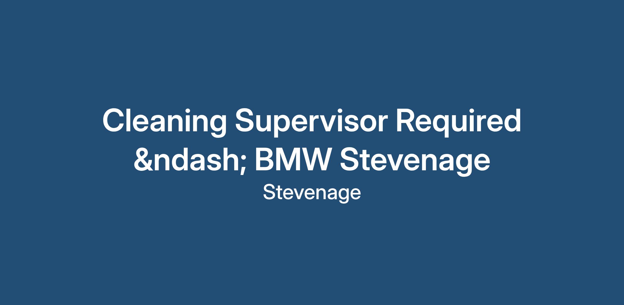 Cleaning Supervisor Required – BMW Stevenage