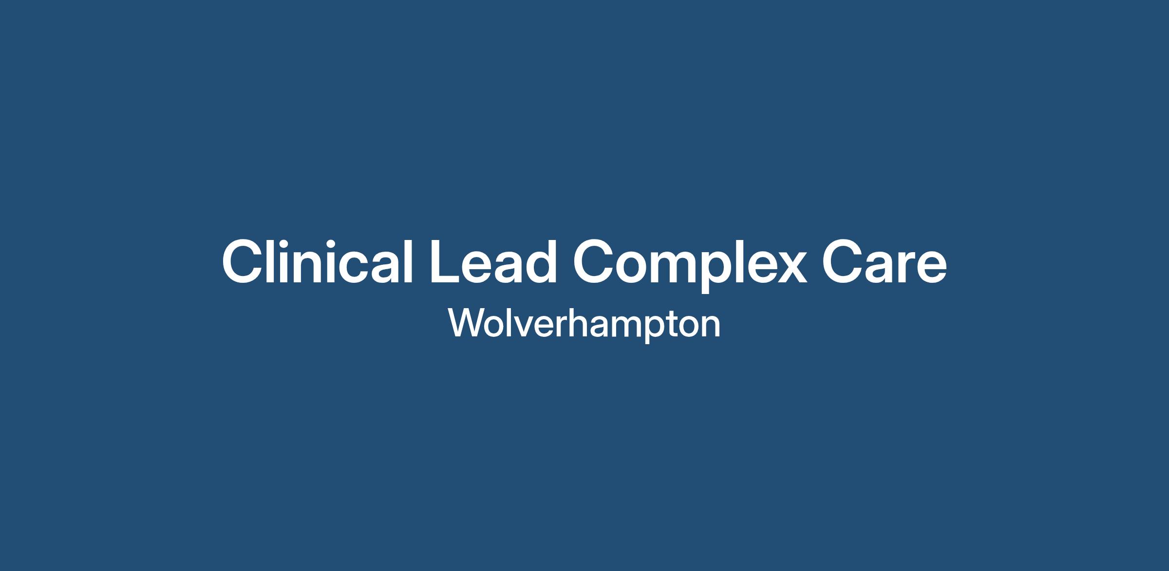 Job Title: Clinical Lead Nurse – Complex Care