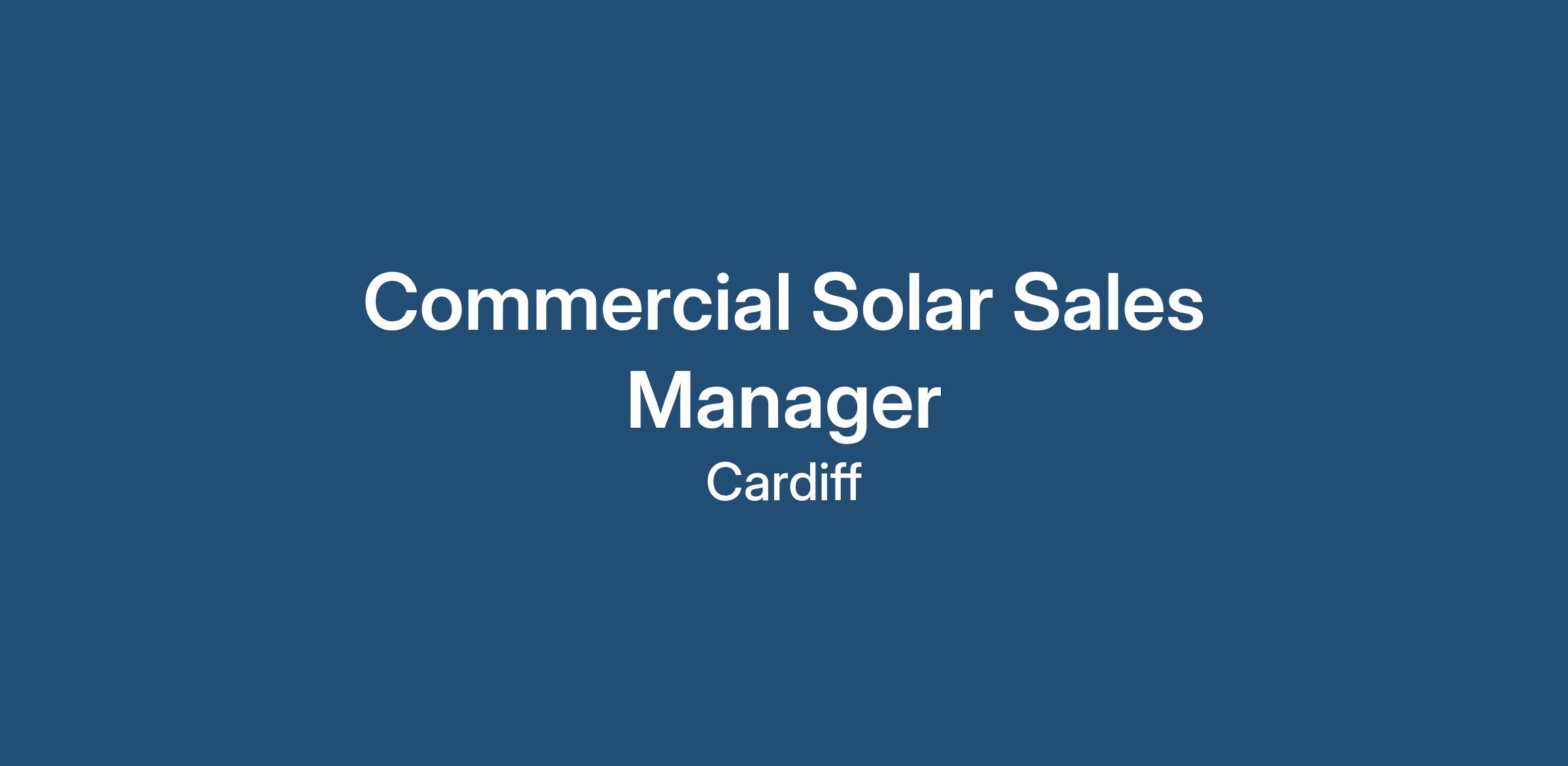 Our client is expanding into the commercial solar PV market and is seeking an experienced Commercial Solar Sales Manager to lead this exciting new division.