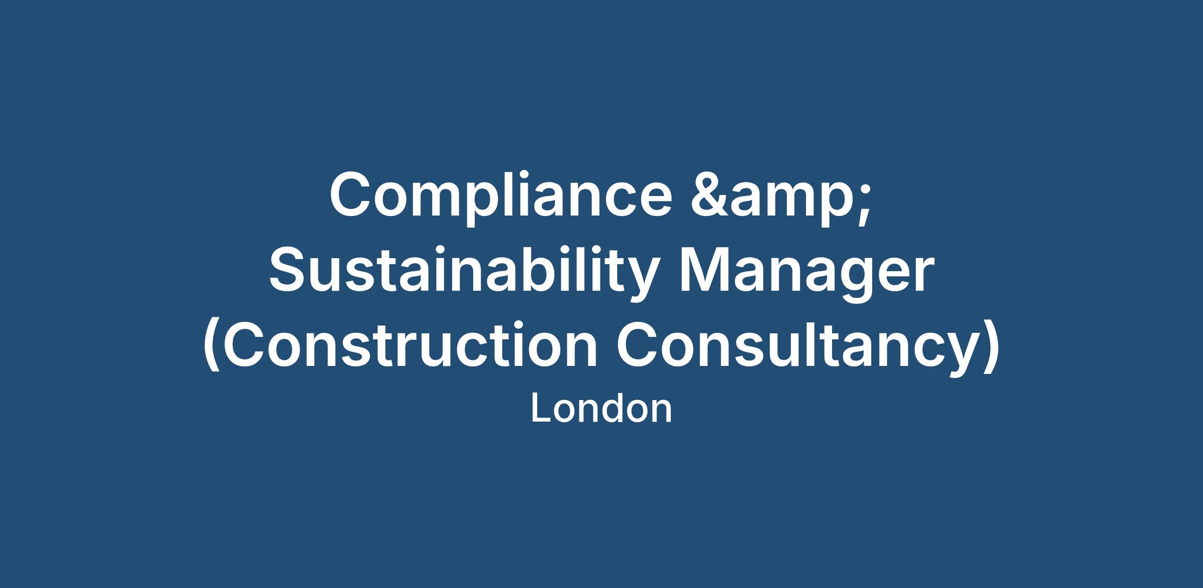 Compliance & Sustainability Manager (Construction Consultancy)
