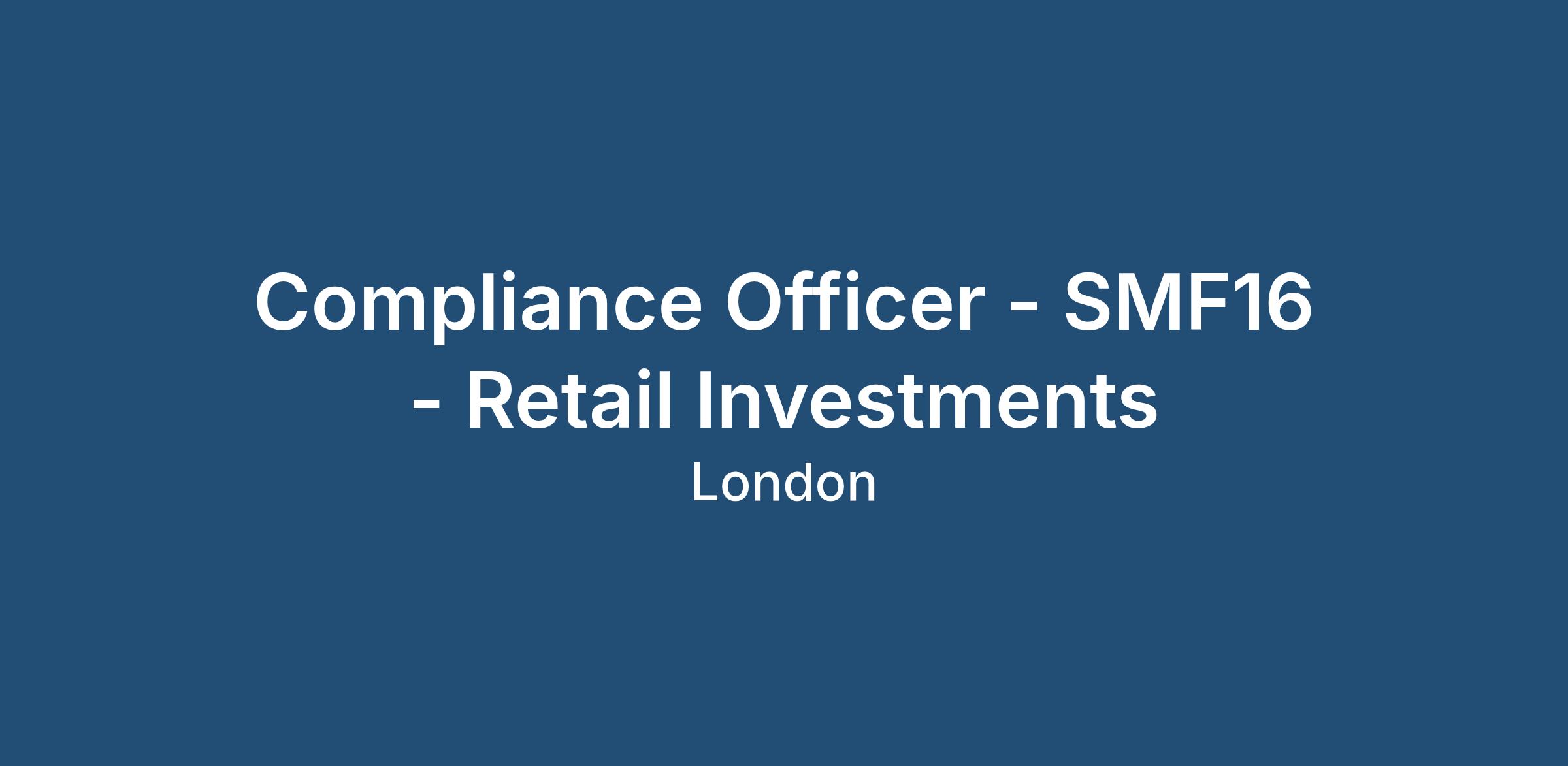 Compliance Officer - SMF16 - Retail Investments
