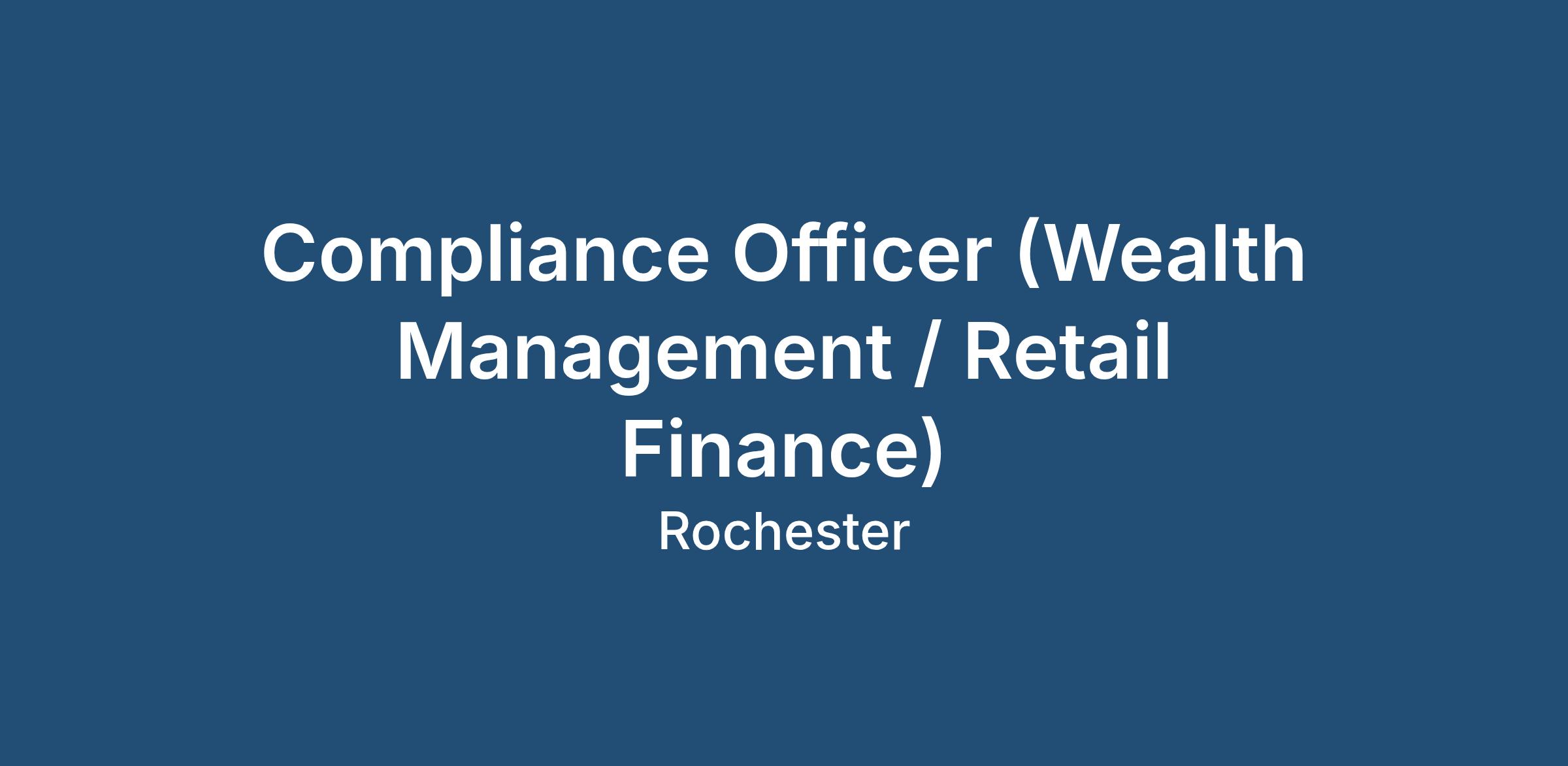 Are you a Compliance Officer or similar from a Wealth Management / Retail Finance or similar background looking for a specialist role where no two days will be the same within a well-established Financial Advisory company who pride themselves on looking after and developing their staff in a role offering ongoing progression?